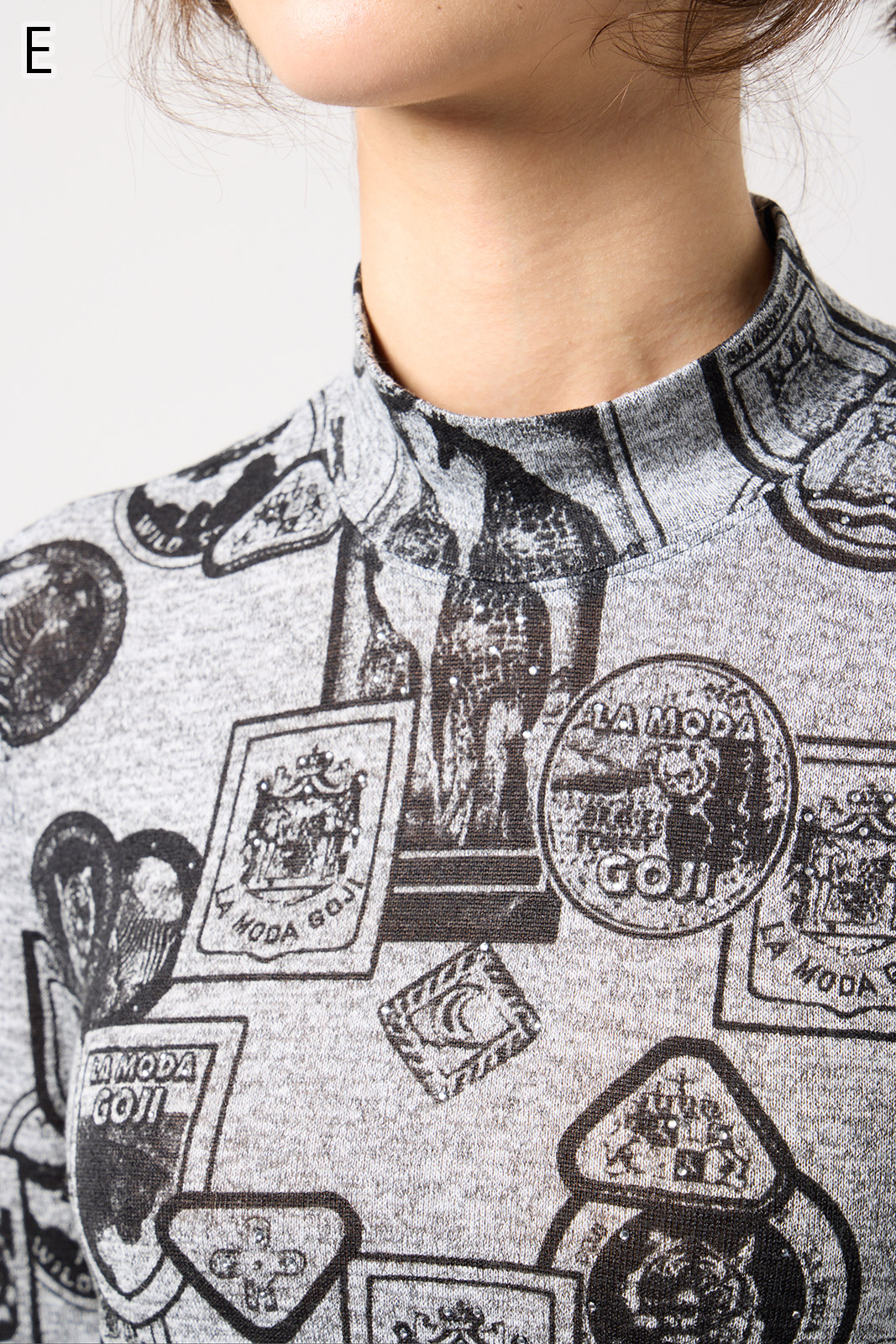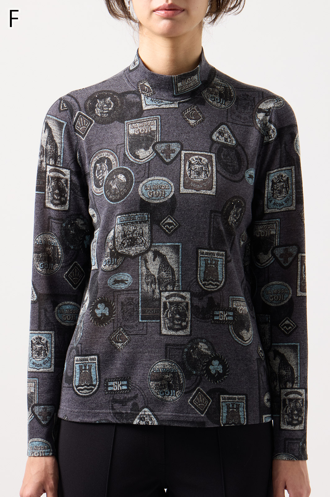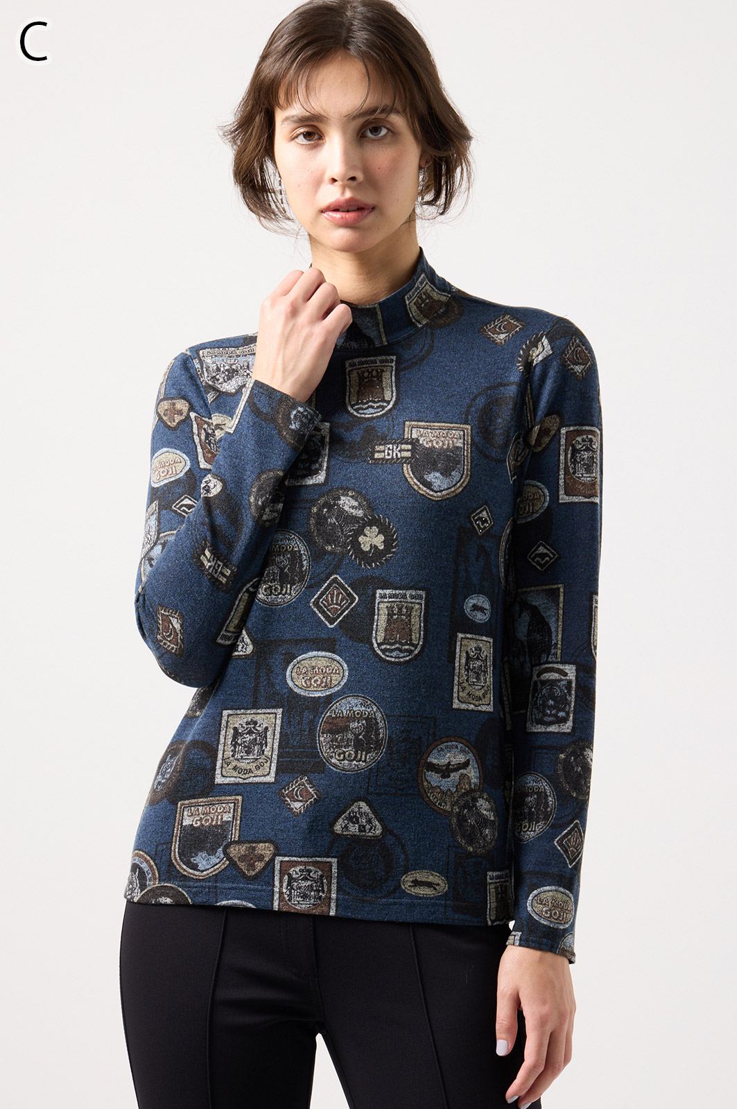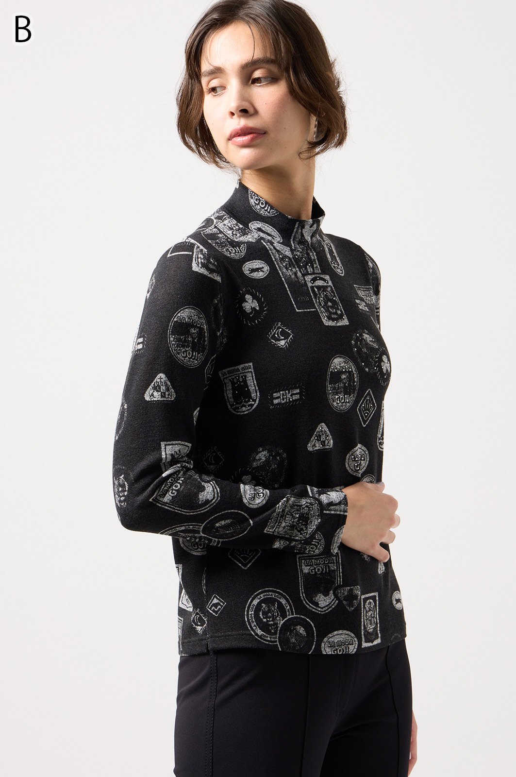 首元が少し立ち上がったデザインで、肌寒い季節にも着やすい1枚。やわらかな着心地のTシャツに、こだわりのオリジナル柄をプラス。シンプルながらもさりげない個性が光る、秋のスタートにちょうどいいベーシックアイテムです。