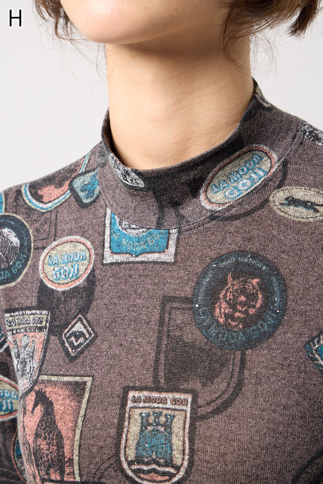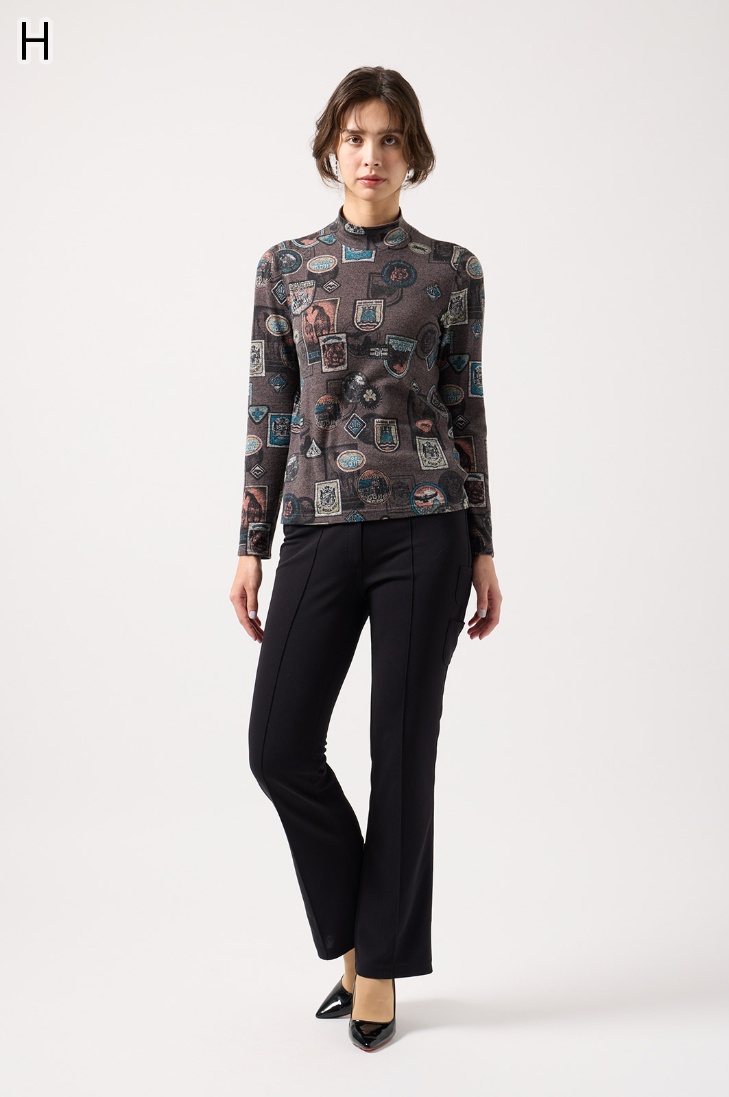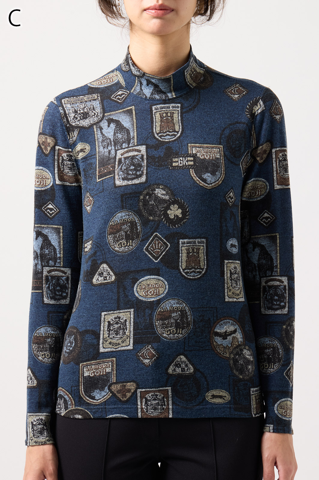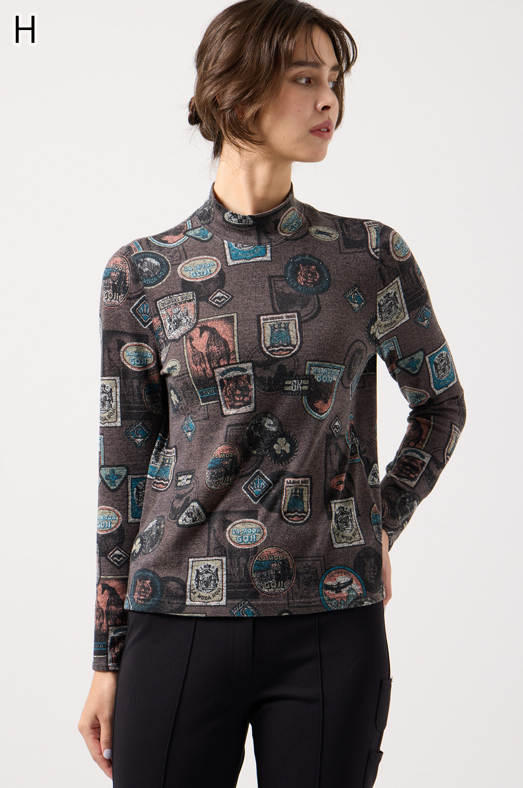 首元が少し立ち上がったデザインで、肌寒い季節にも着やすい1枚。やわらかな着心地のTシャツに、こだわりのオリジナル柄をプラス。シンプルながらもさりげない個性が光る、秋のスタートにちょうどいいベーシックアイテムです。