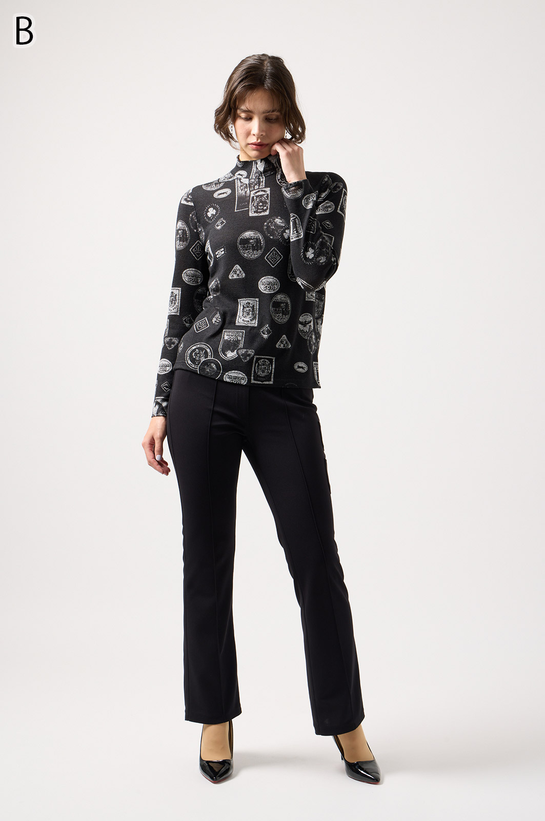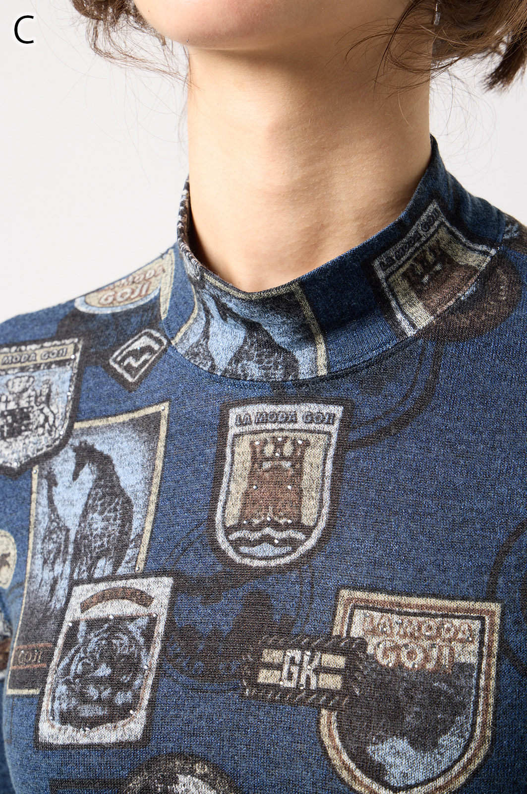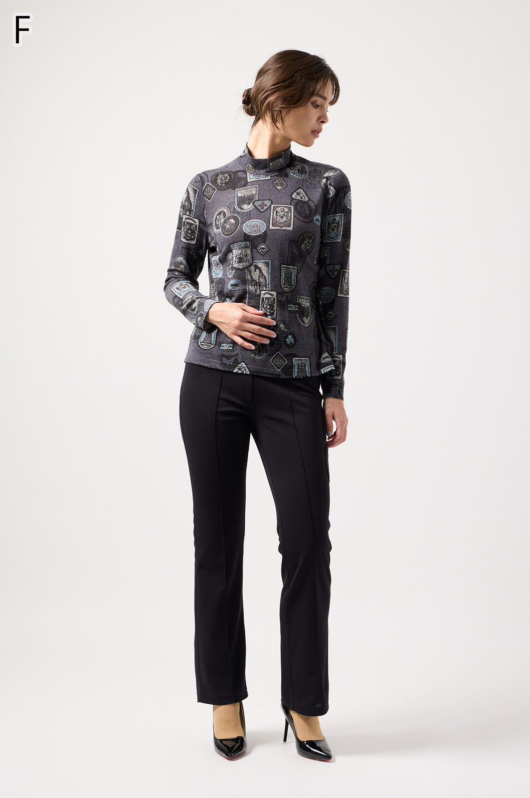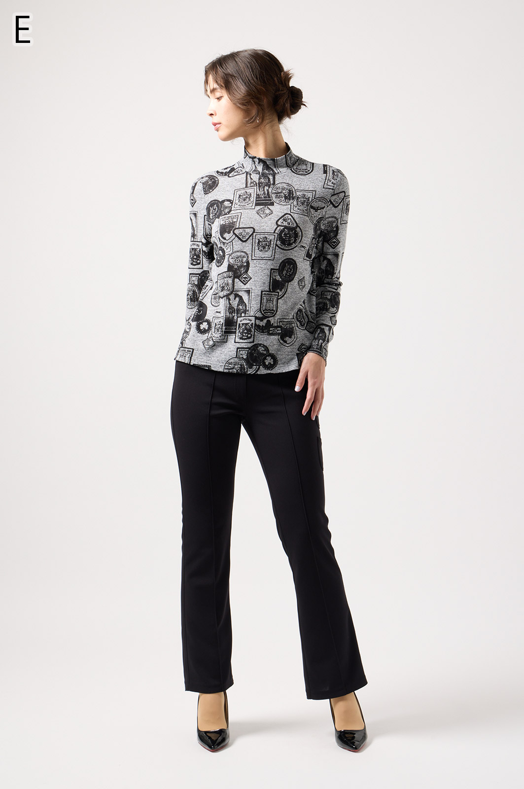首元が少し立ち上がったデザインで、肌寒い季節にも着やすい1枚。やわらかな着心地のTシャツに、こだわりのオリジナル柄をプラス。シンプルながらもさりげない個性が光る、秋のスタートにちょうどいいベーシックアイテムです。