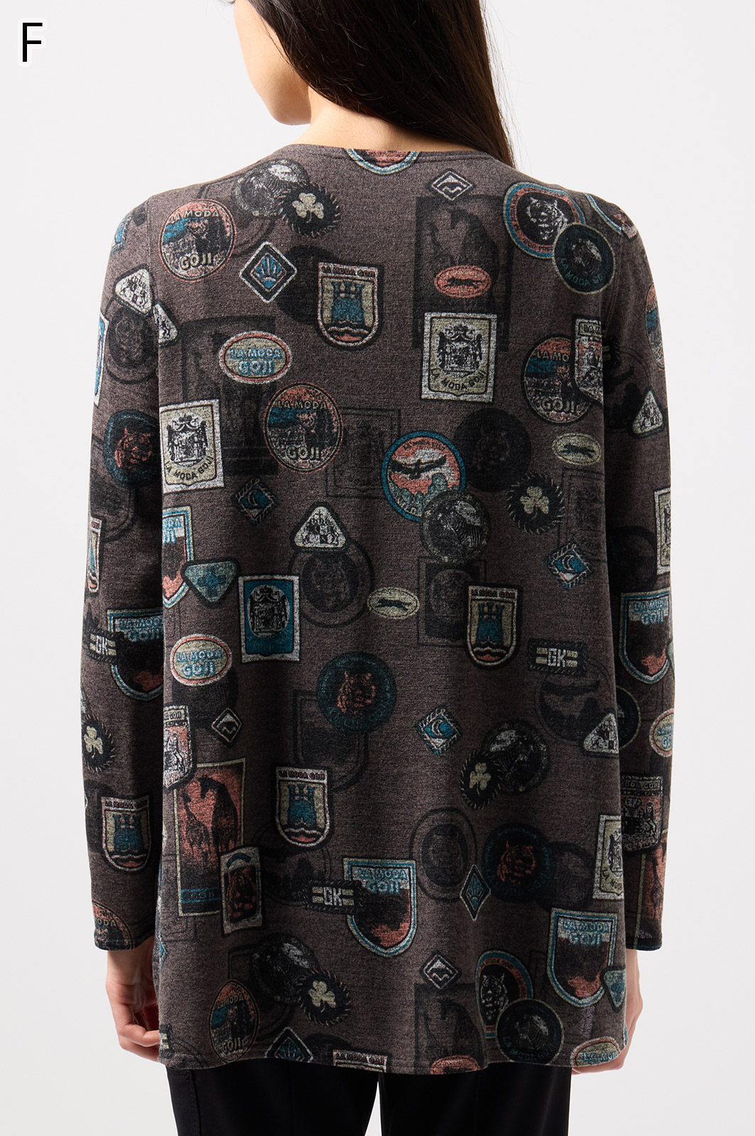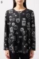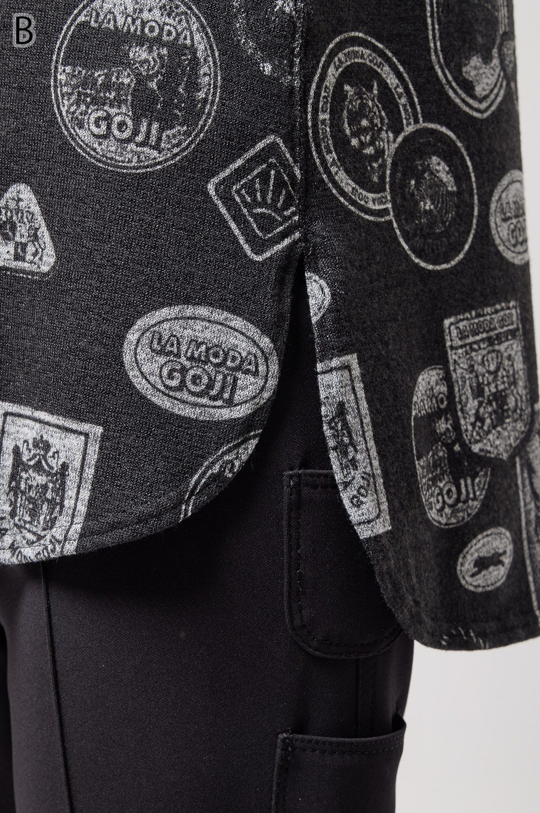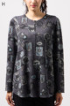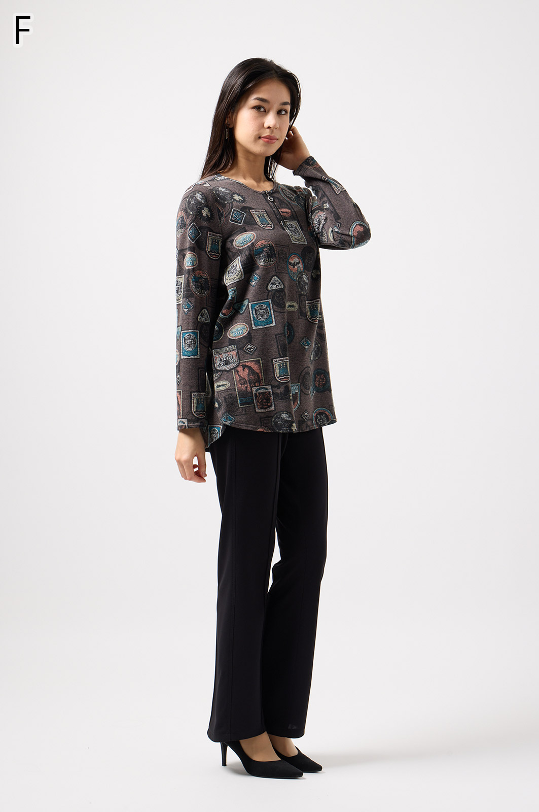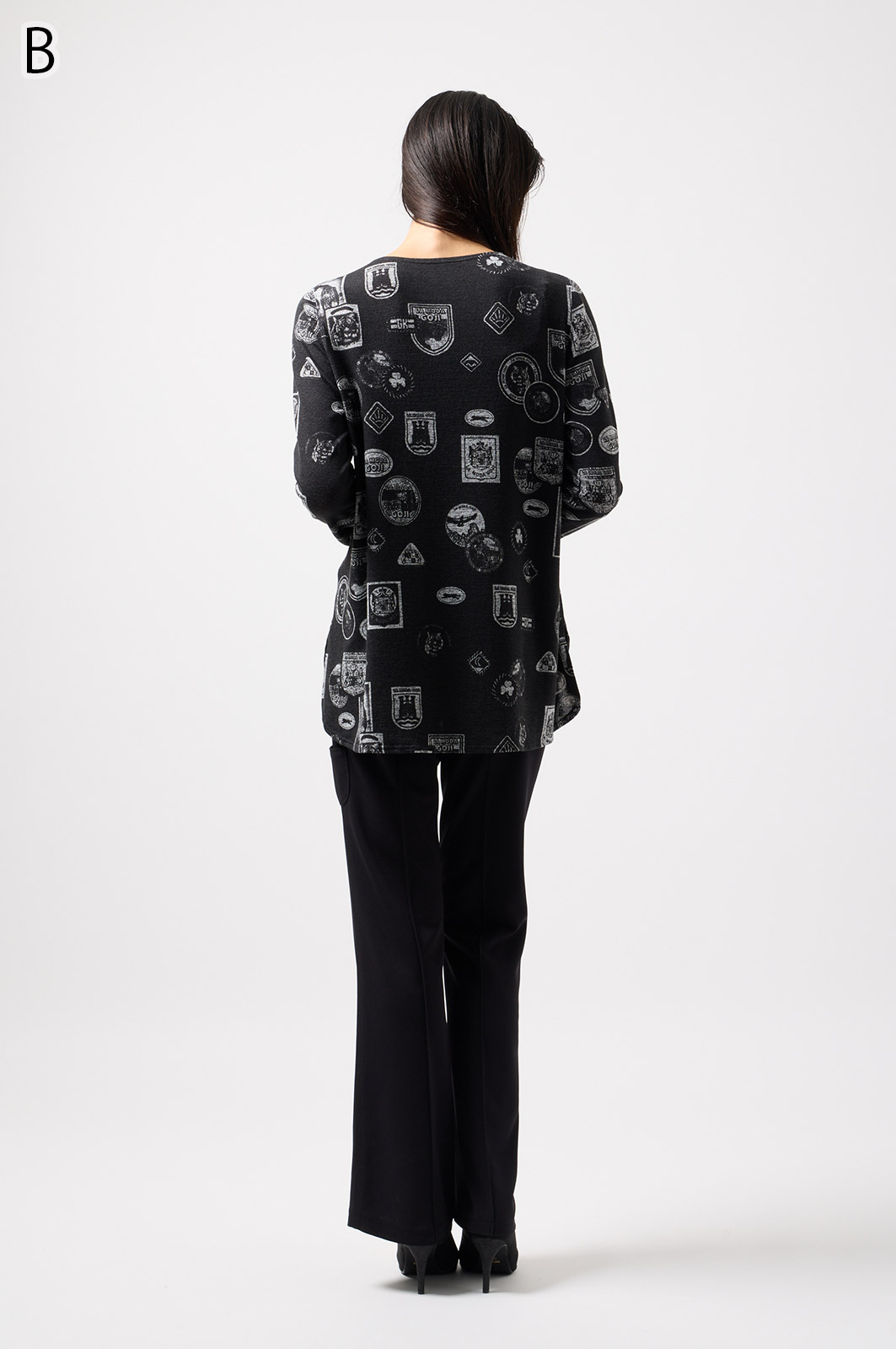 やわらかい肌ざわりのニット生地に、個性が光るオリジナル柄をプリント。前ファスナーで着脱しやすく、ゆったり広がるAラインが体のラインをきれいに見せてくれます。