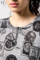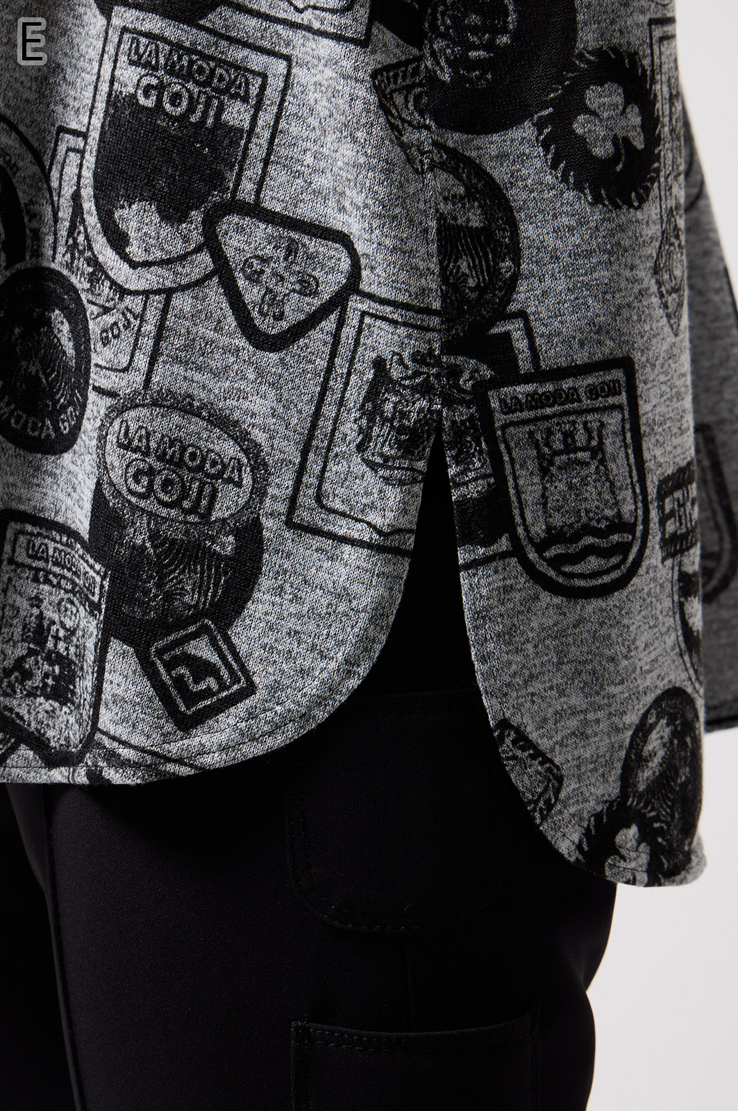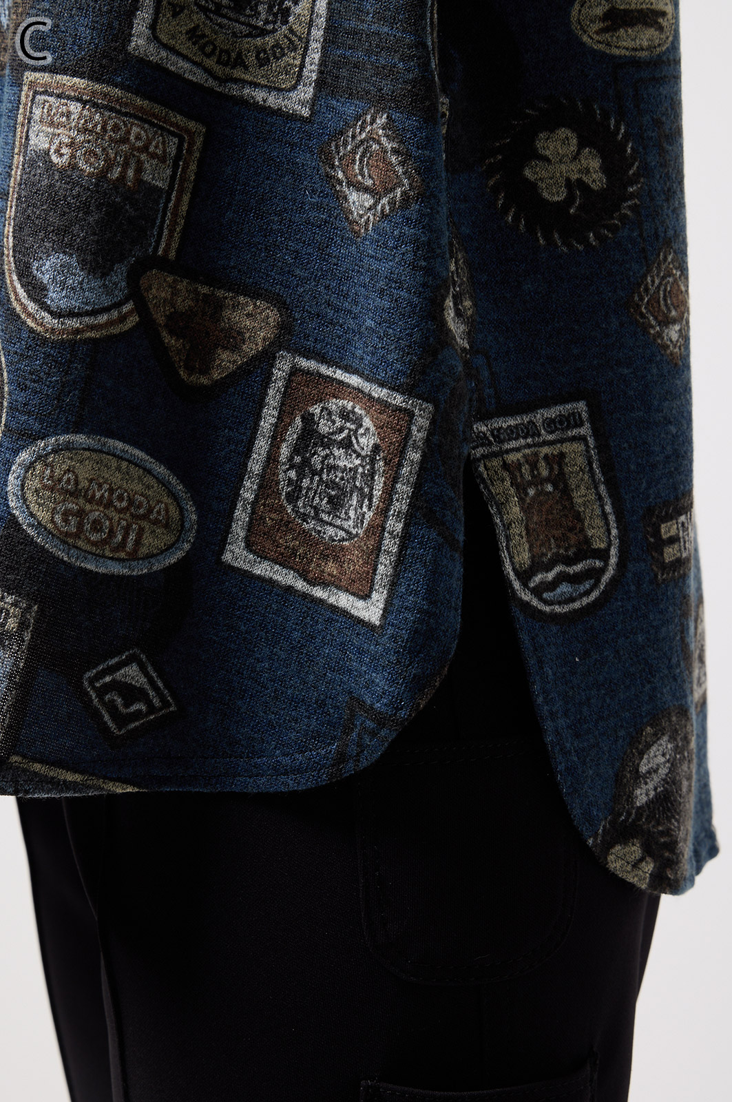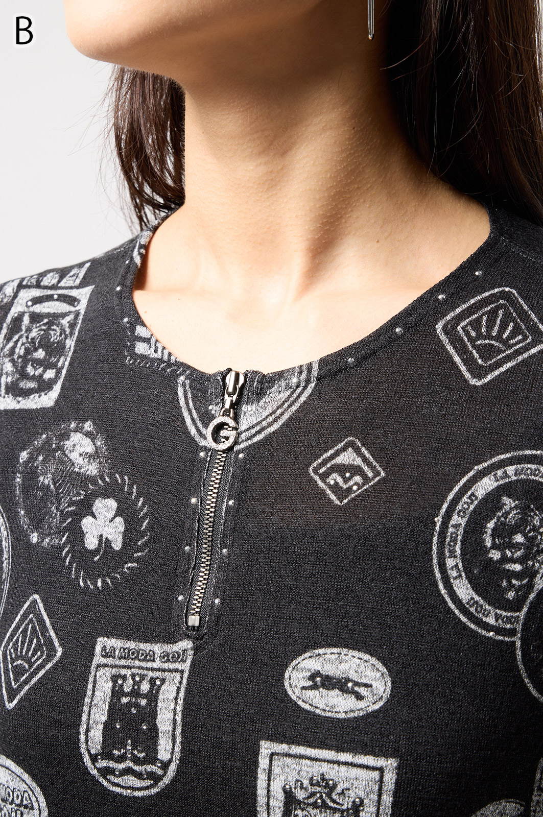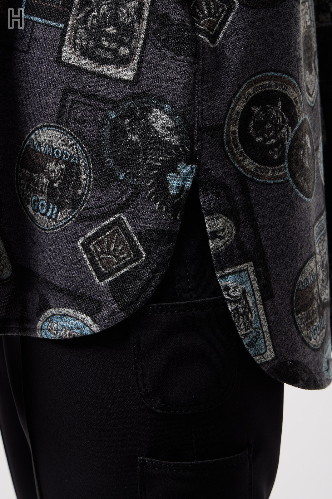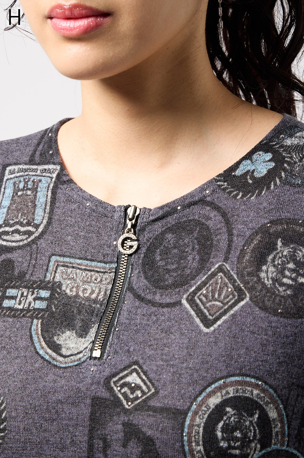 やわらかい肌ざわりのニット生地に、個性が光るオリジナル柄をプリント。前ファスナーで着脱しやすく、ゆったり広がるAラインが体のラインをきれいに見せてくれます。