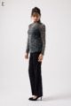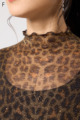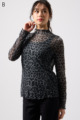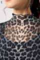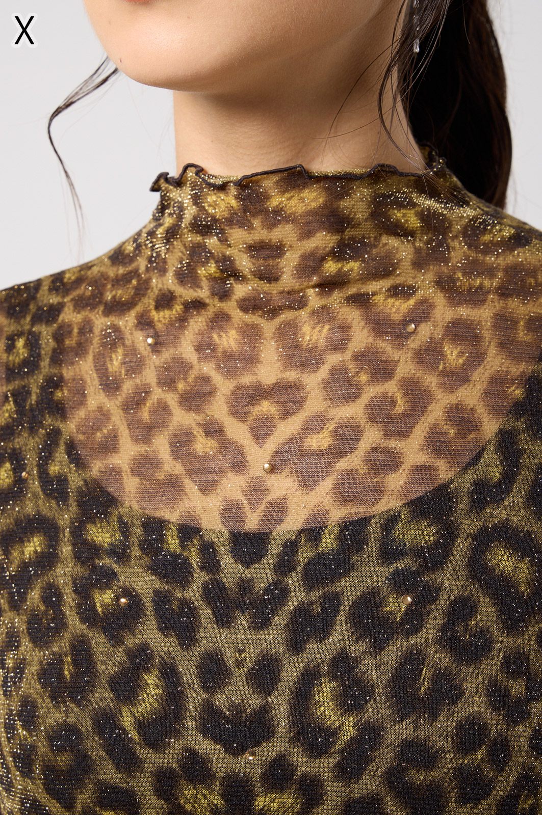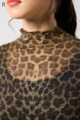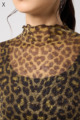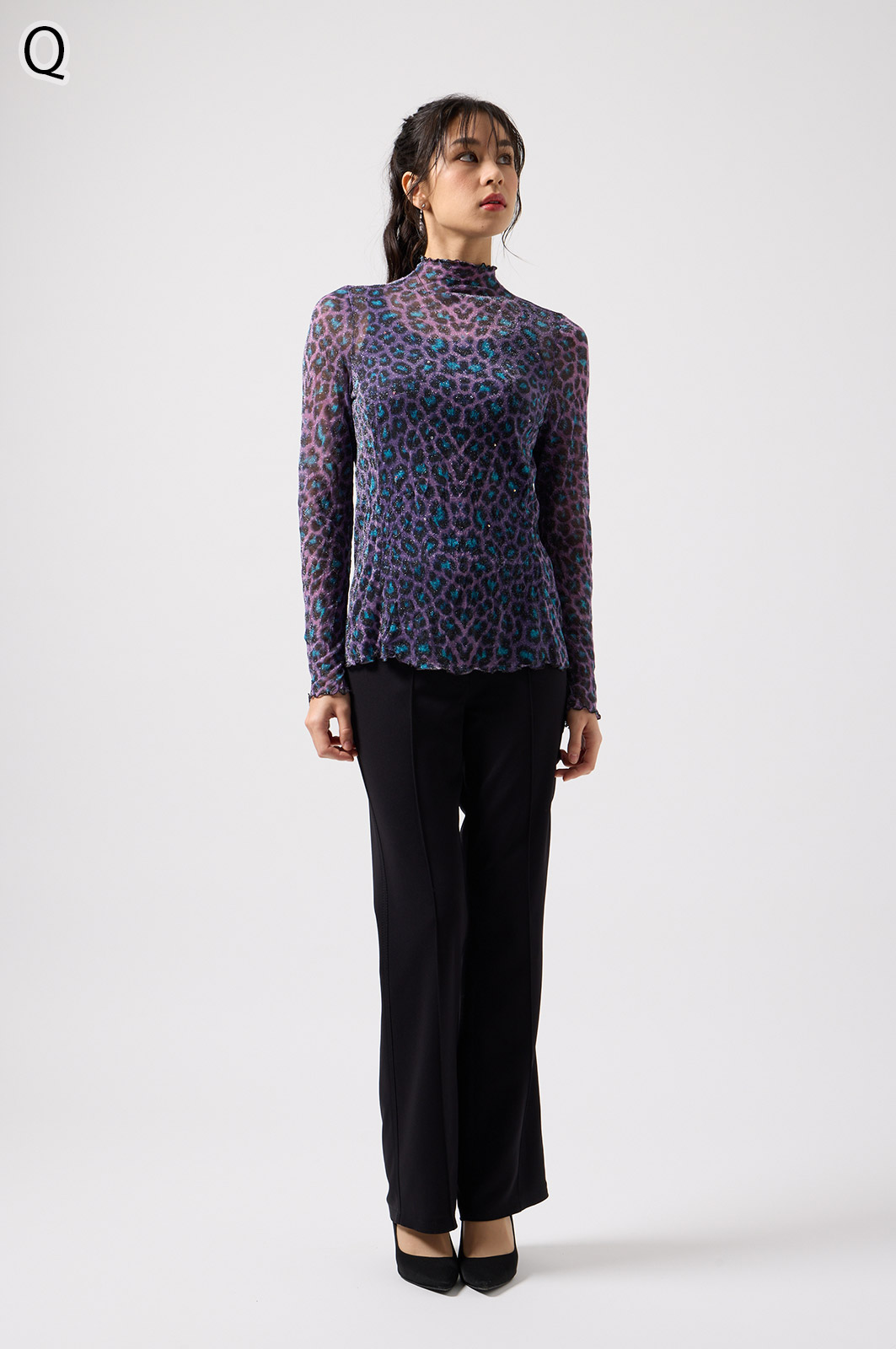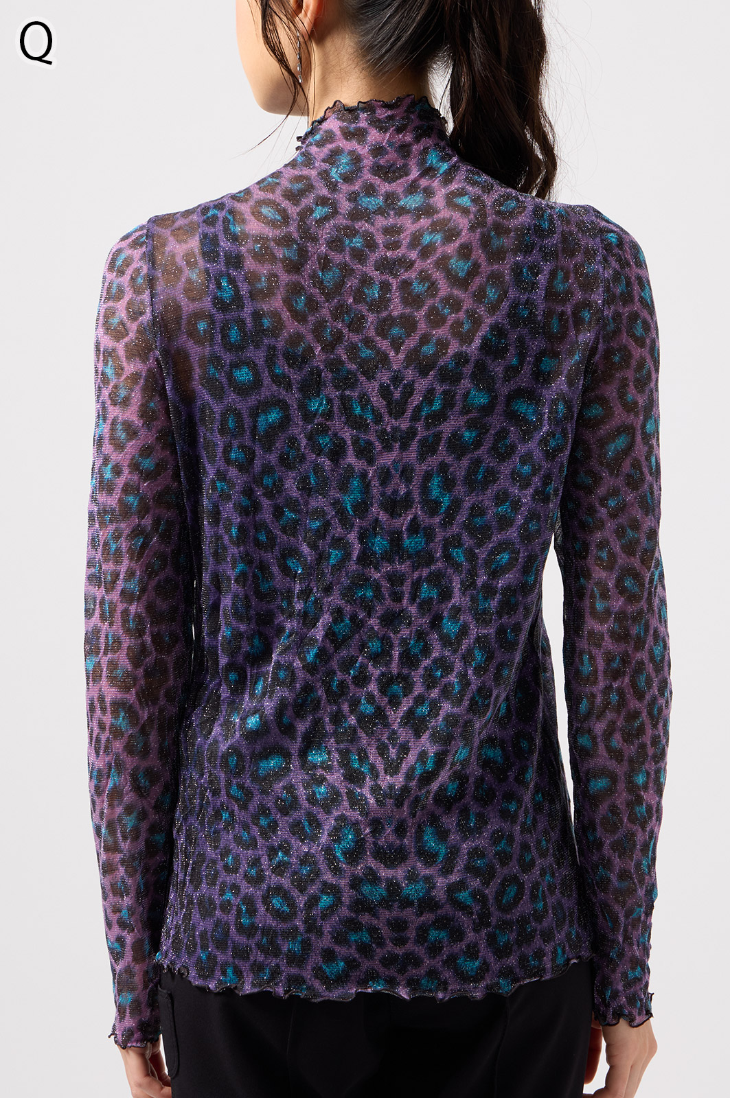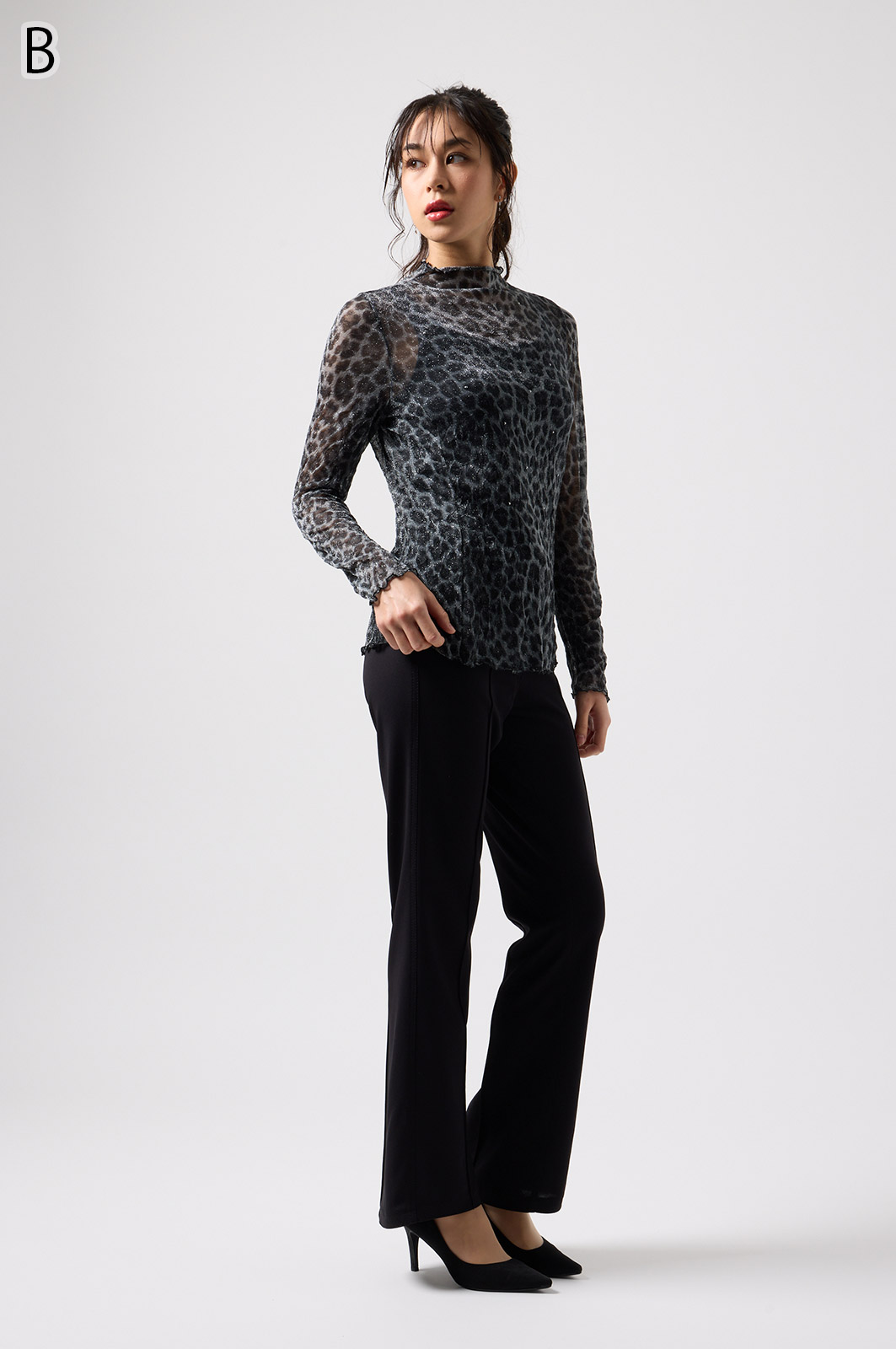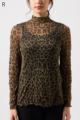 キラッと光るヒョウ柄のメッシュ素材に、細かなシワ加工を加えたインナーTシャツ。軽やかで動きのある表情が魅力。一枚で着ても、重ねても華やかさを演出できます♪