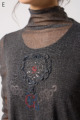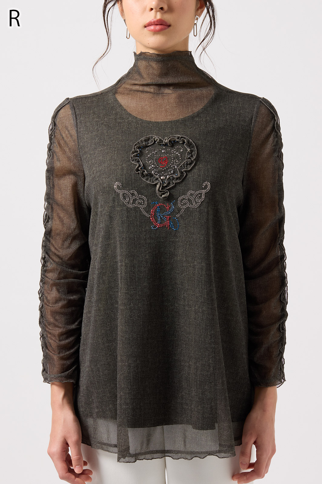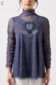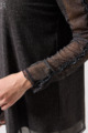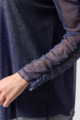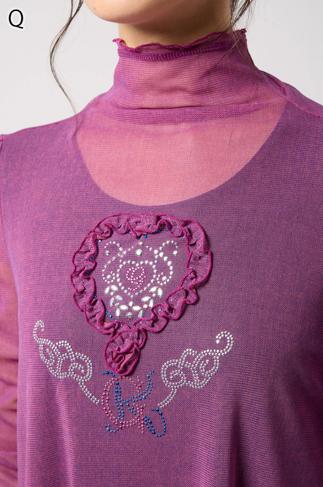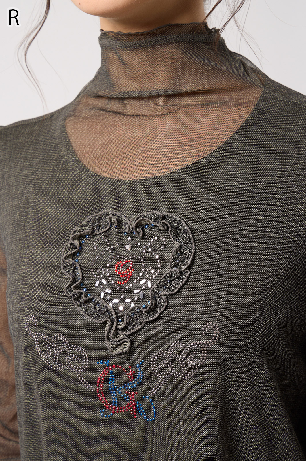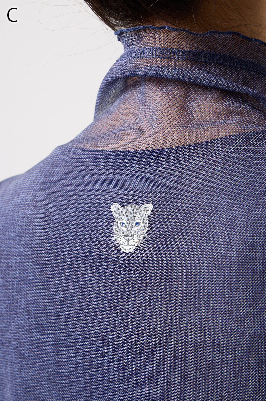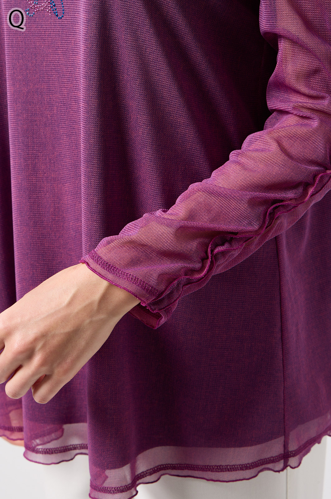 ほんのり透け感のあるメッシュ生地に、前身ごろだけニットを重ねた2枚仕立てのTシャツ。体のラインを拾いにくいAラインで、晩夏から初秋にかけてサラッと着られる便利な一枚です。