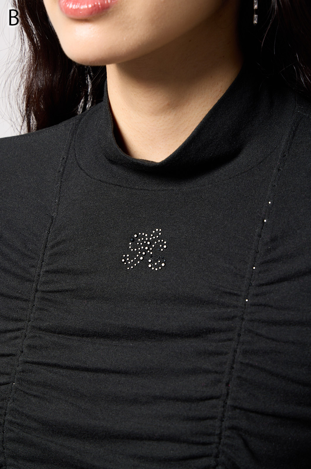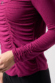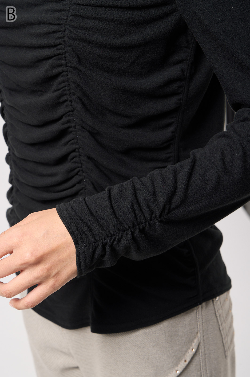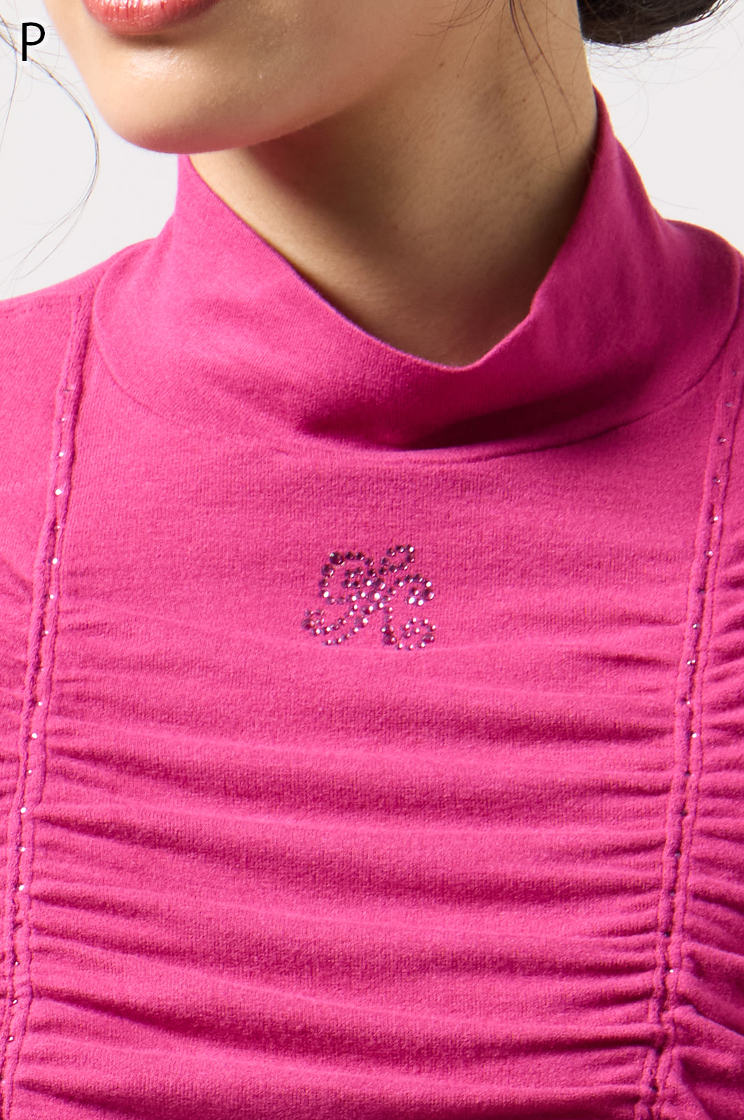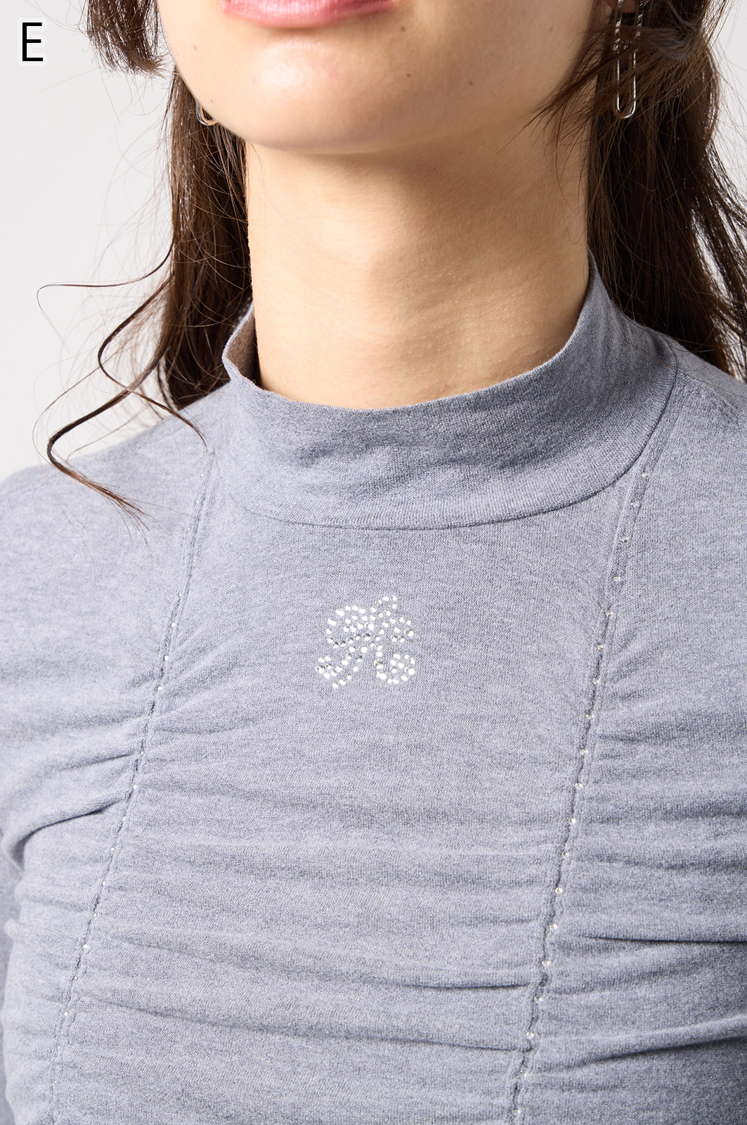 ふんわりやわらかいガーゼ風の素材で、軽いのにあたたかみのある着心地。前側に寄せたギャザーがアクセントになった、1枚でも重ね着でも使える万能インナーTシャツ。