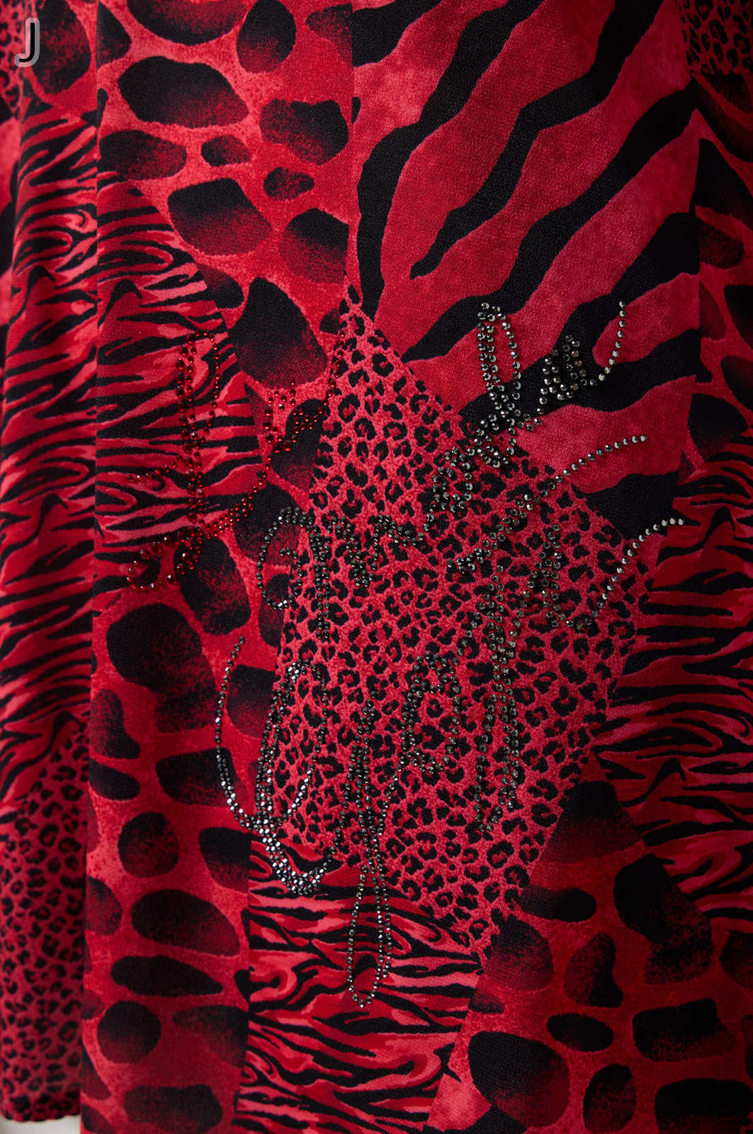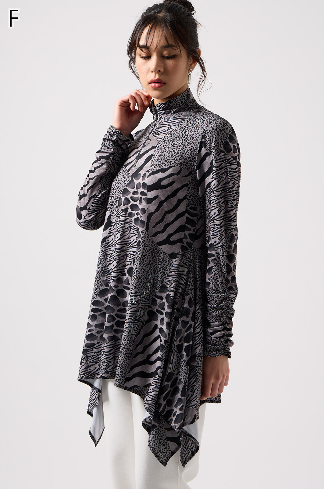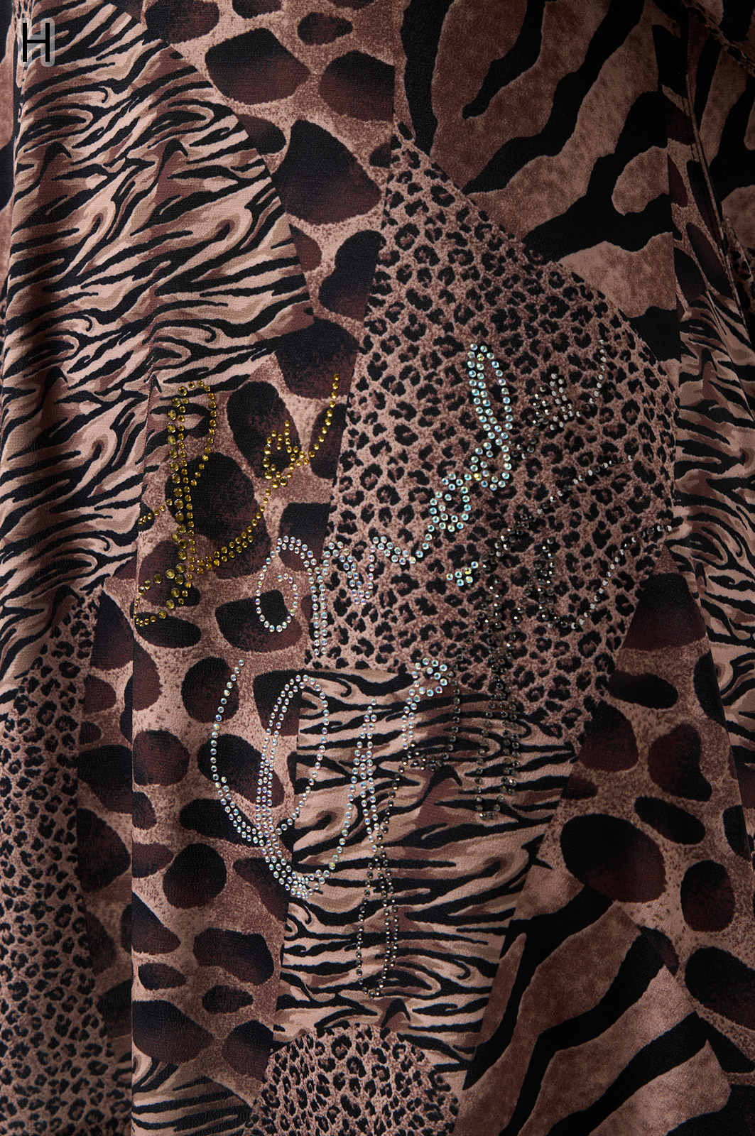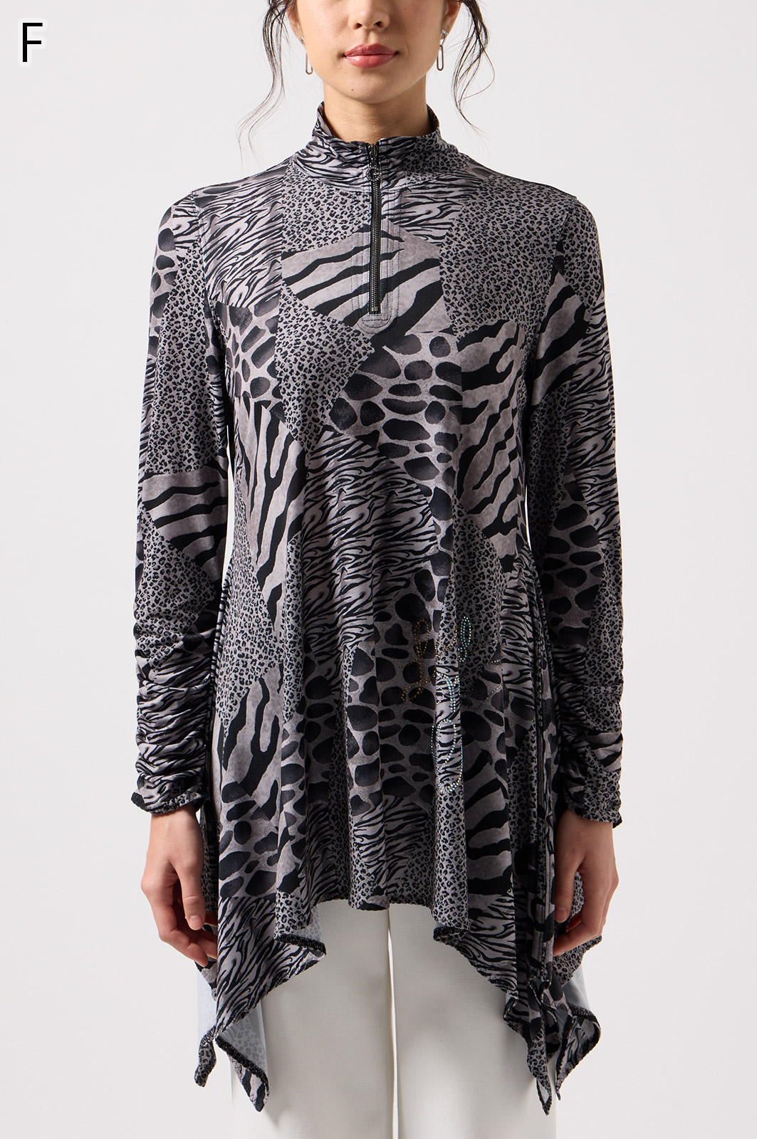 やわらかなニット素材にアニマル柄をのせた、大人っぽく着られるチュニック丈Tシャツ。ヒップまで隠れる丈感で体型カバーも◎。動きのある裾ラインが、シンプルすぎない華やかさをプラスしてくれます。