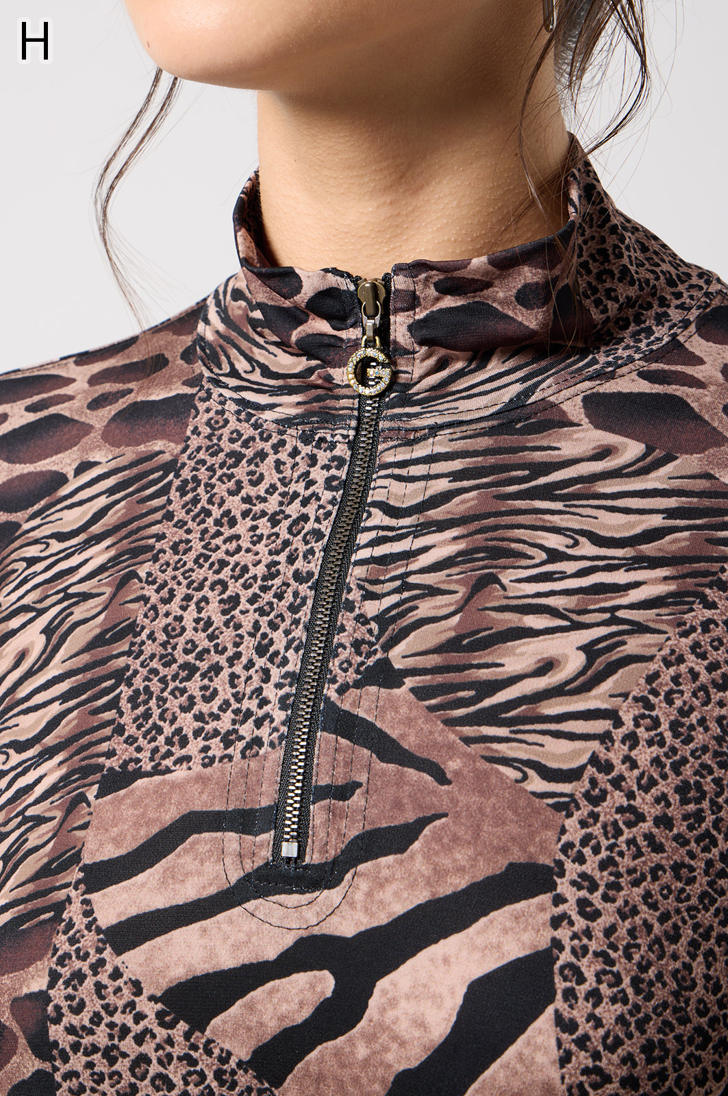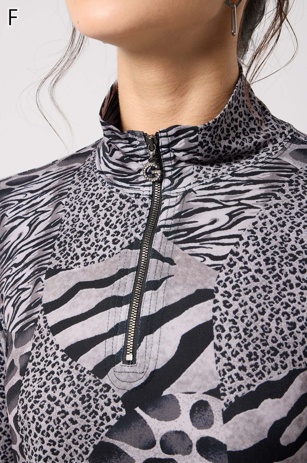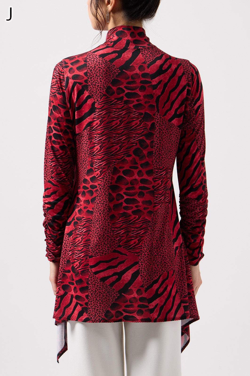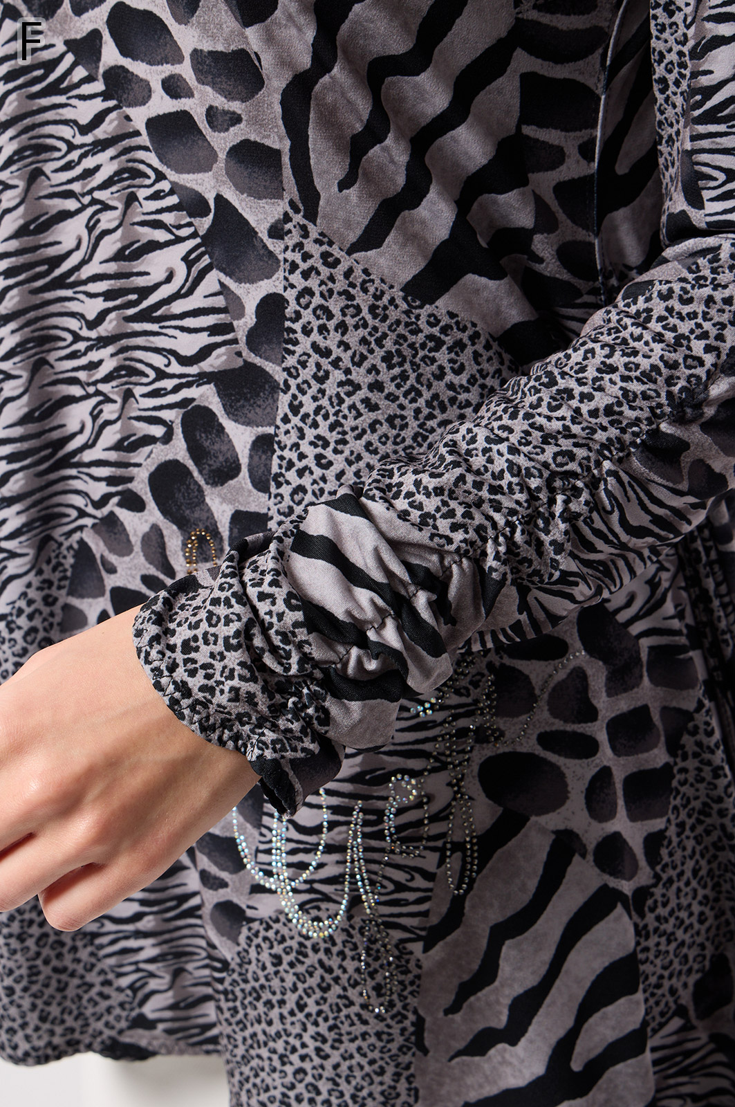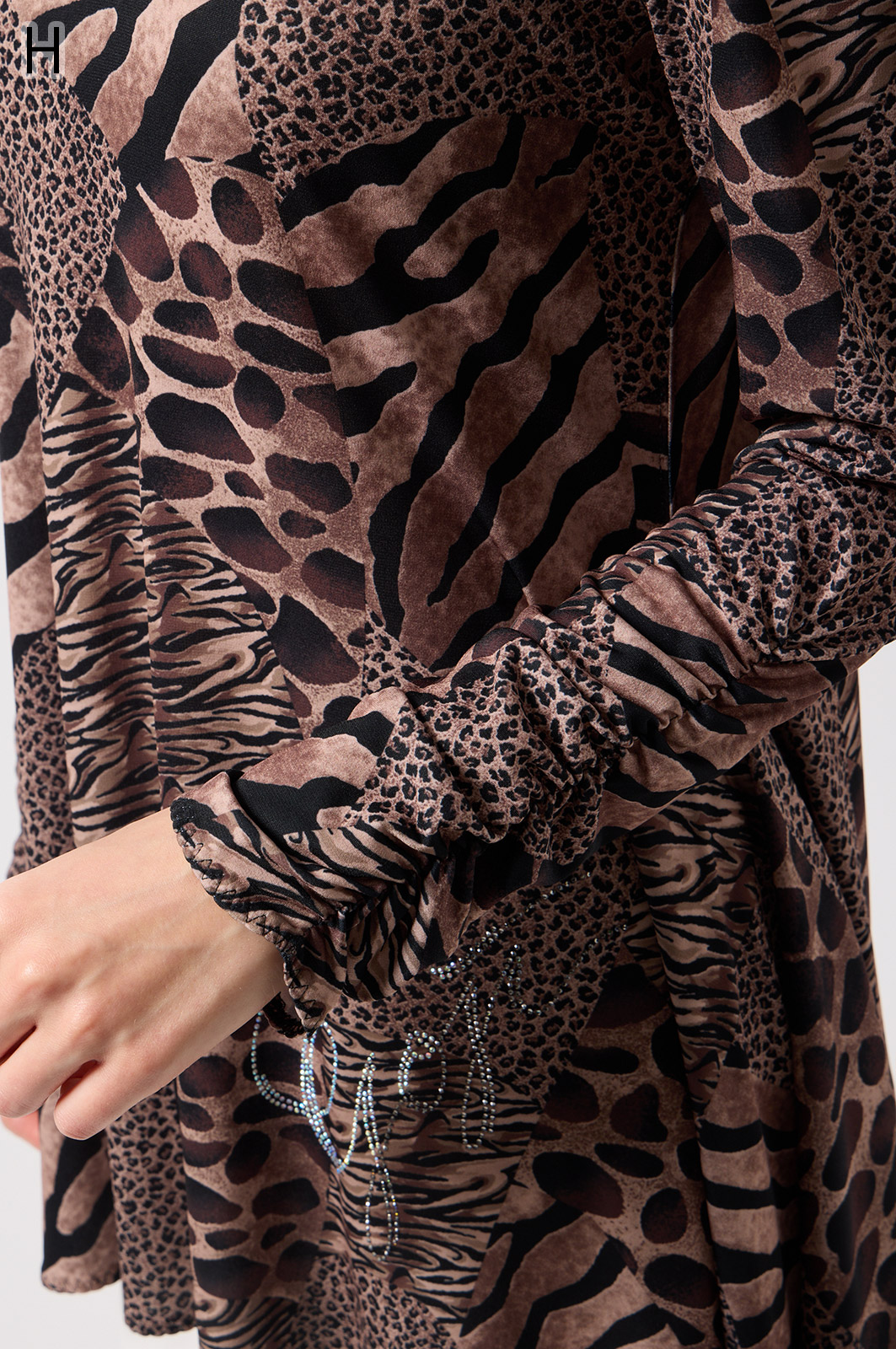 やわらかなニット素材にアニマル柄をのせた、大人っぽく着られるチュニック丈Tシャツ。ヒップまで隠れる丈感で体型カバーも◎。動きのある裾ラインが、シンプルすぎない華やかさをプラスしてくれます。