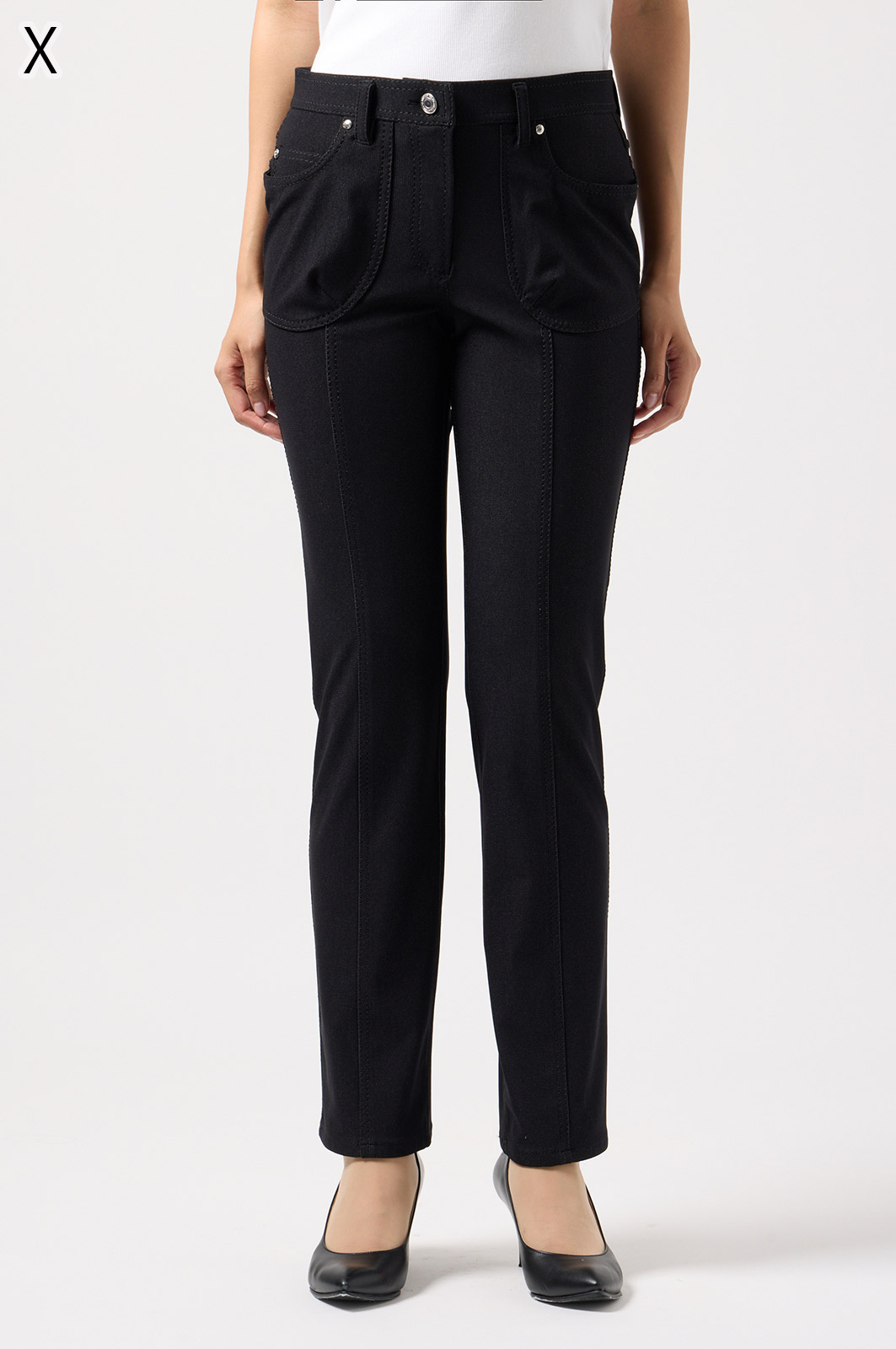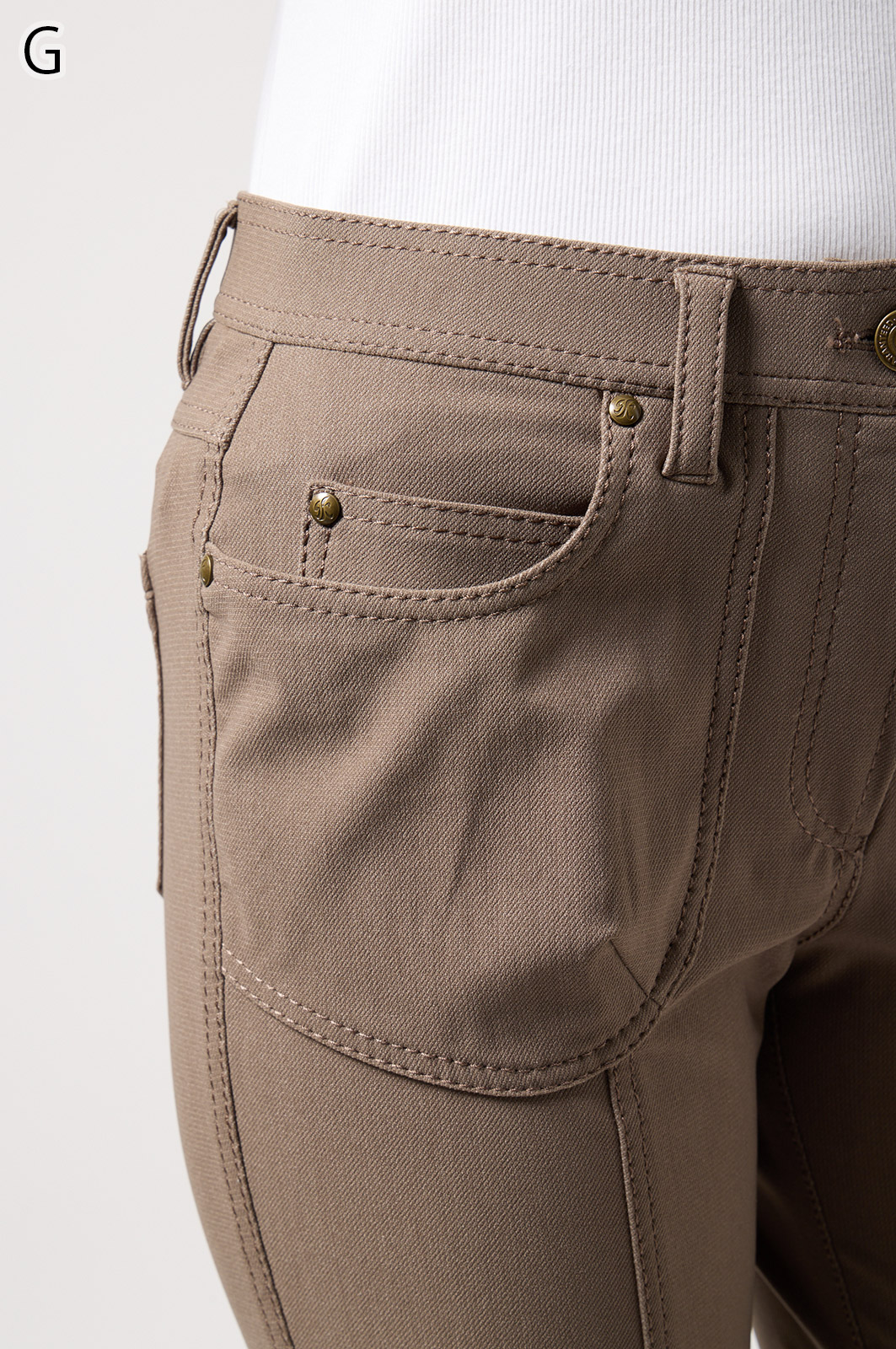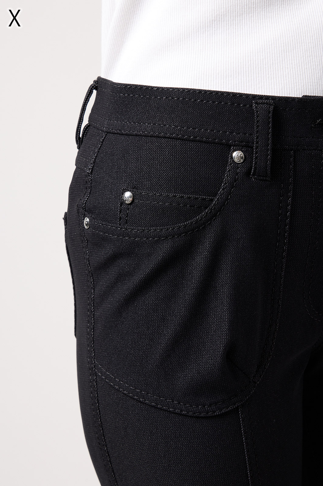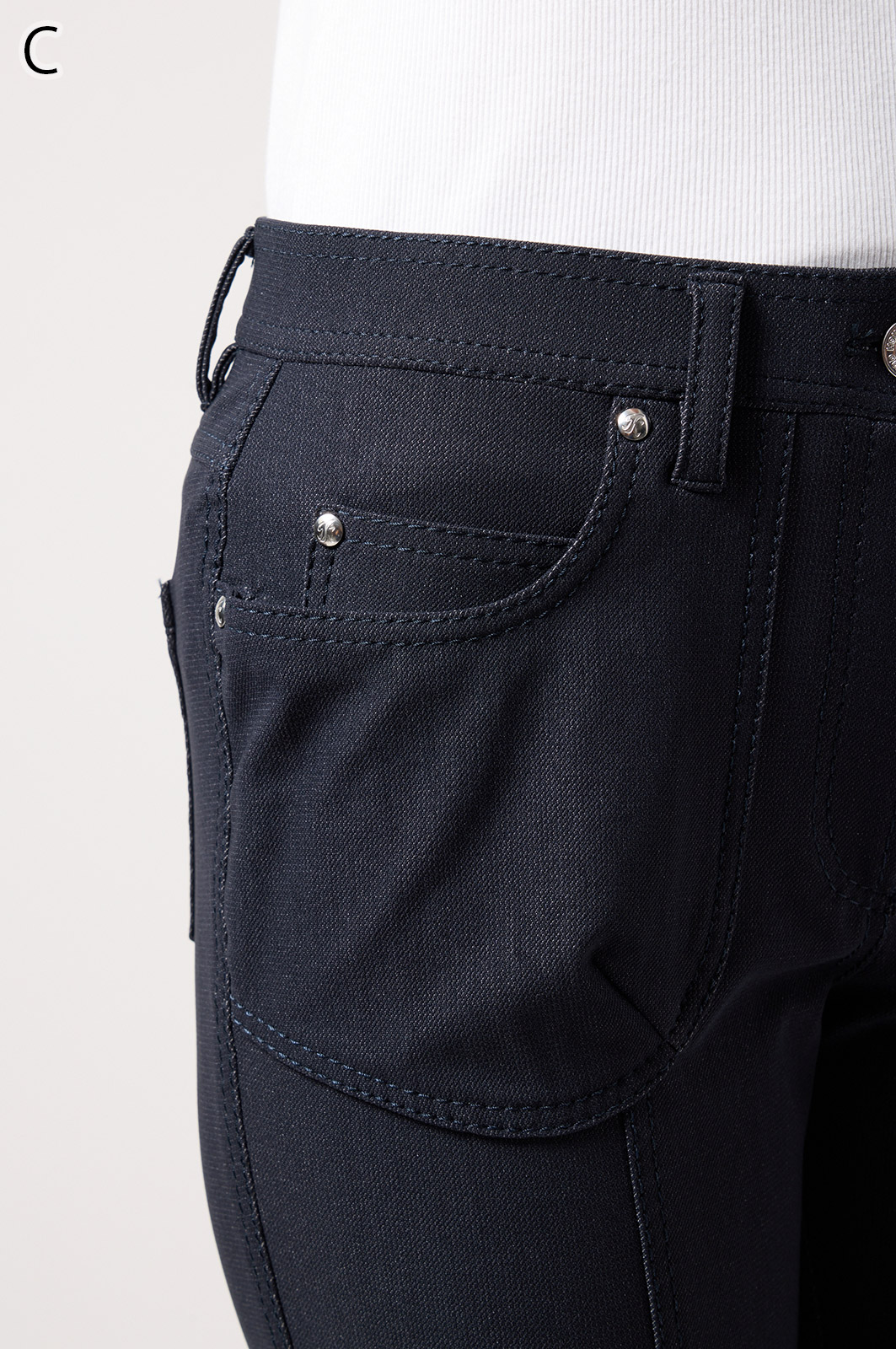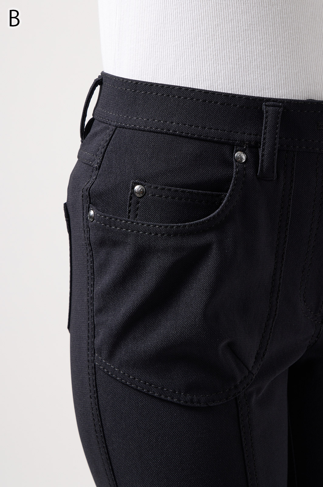 ひんやり快適で乾きやすく、日差しもガード。お手入れラクな高機能素材のパンツ。ストレッチが効いたジーンズ風デザインで動きやすく、ウエストゴムで着脱もラク。脚をすっきり見せるブーツカットと立体感ある8枚接ぎ仕立てで、スタイルアップもばっちり!