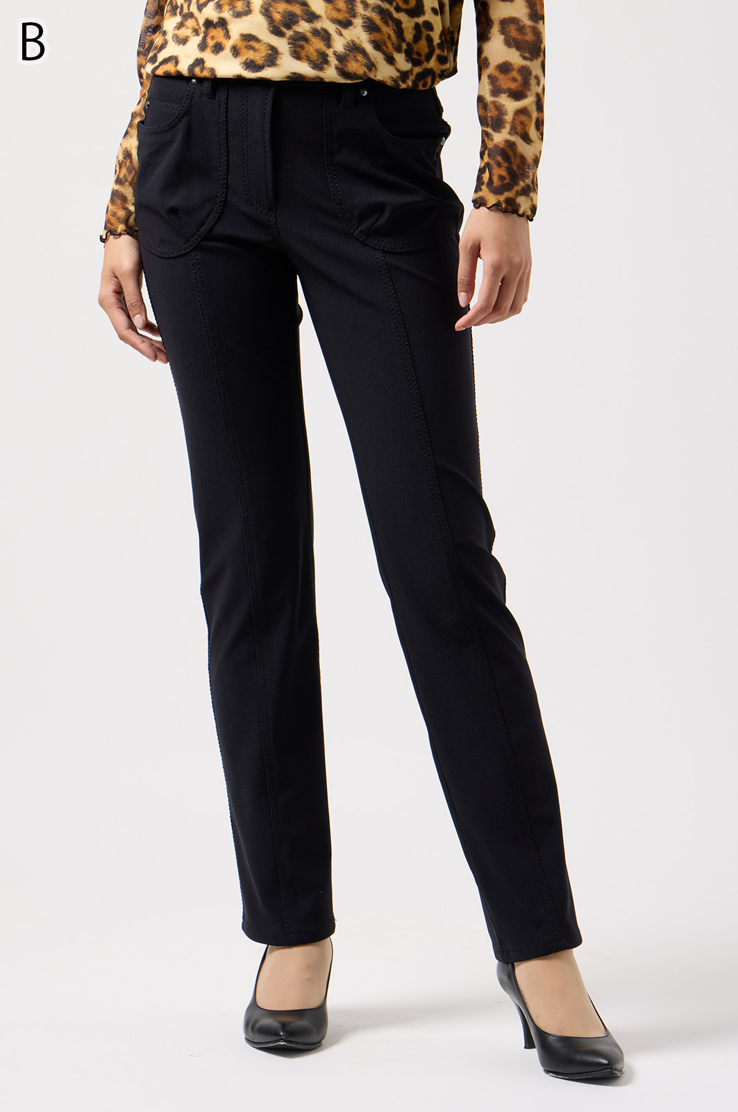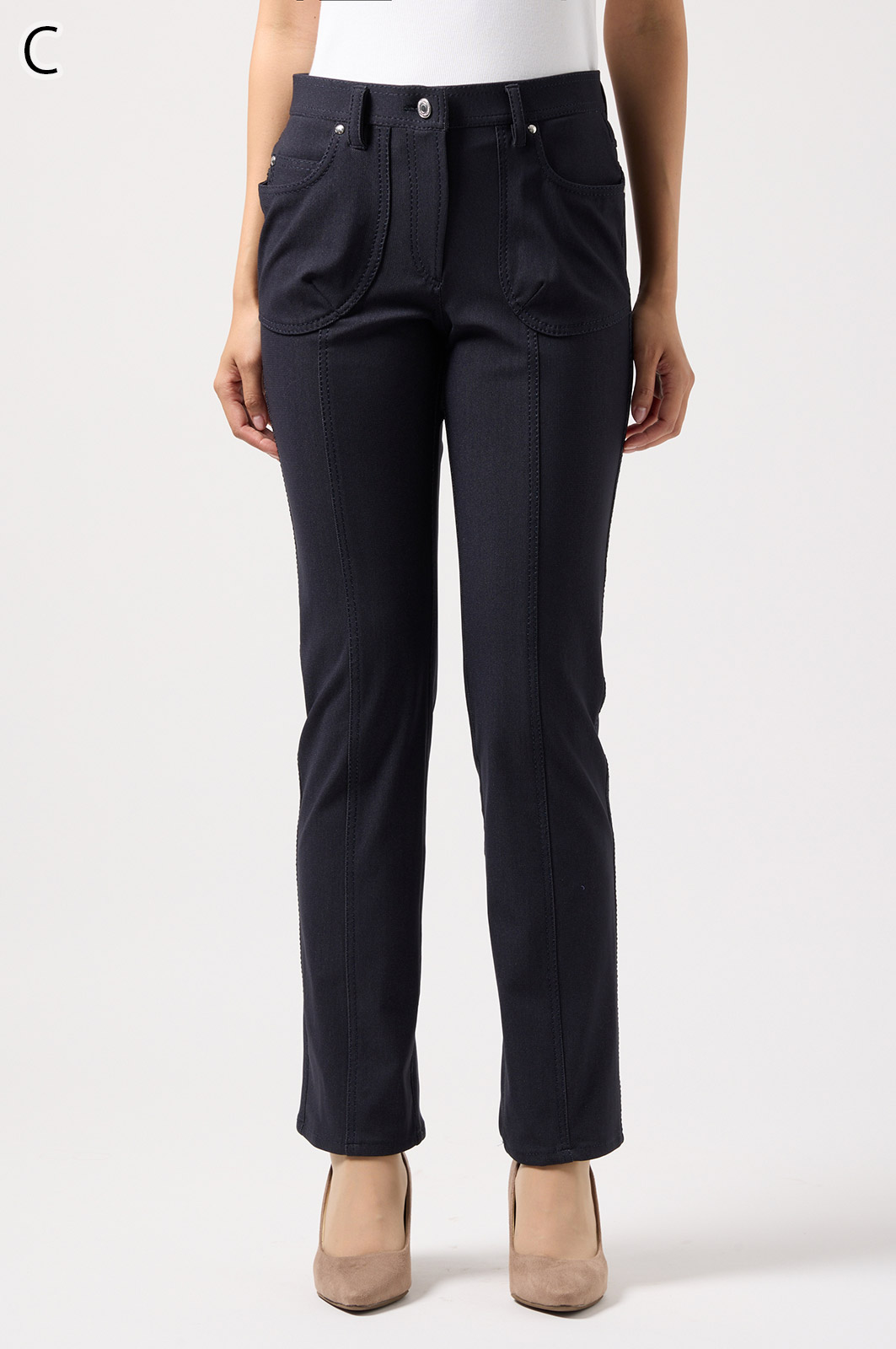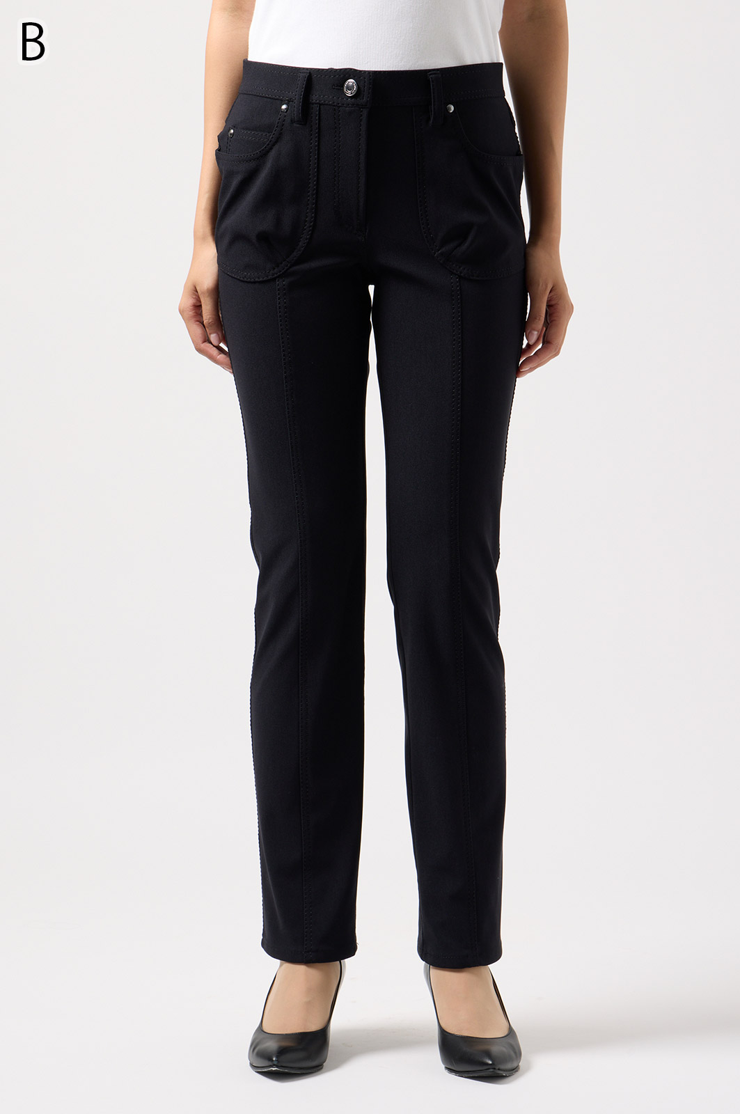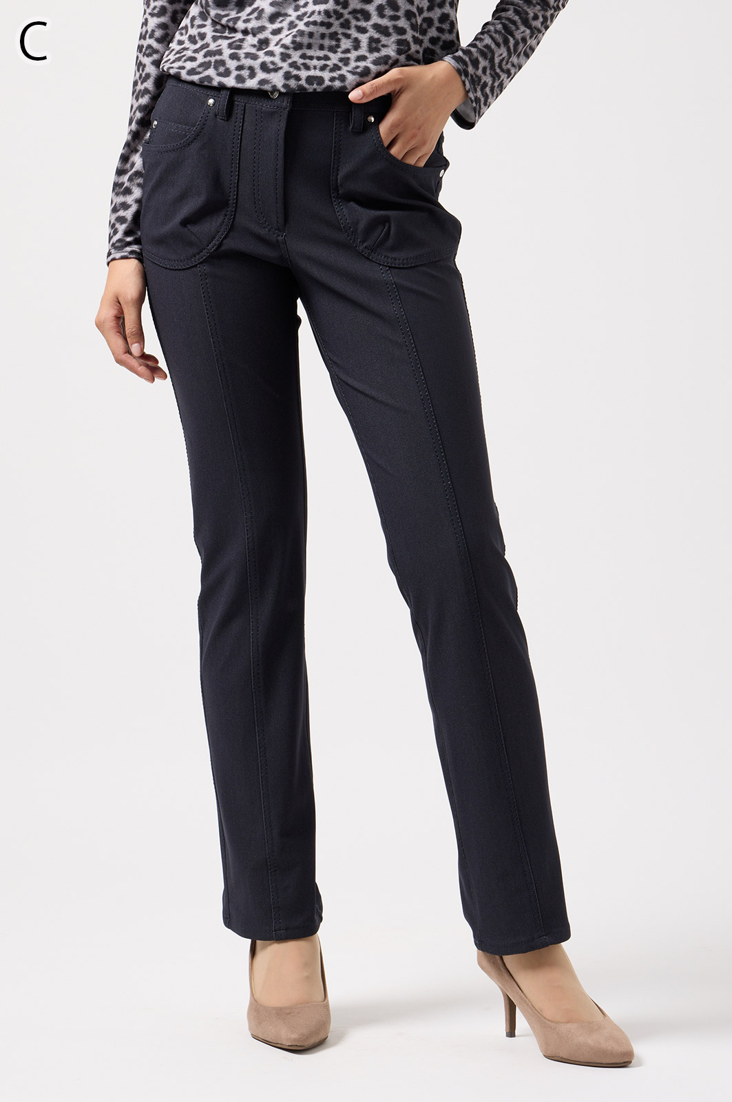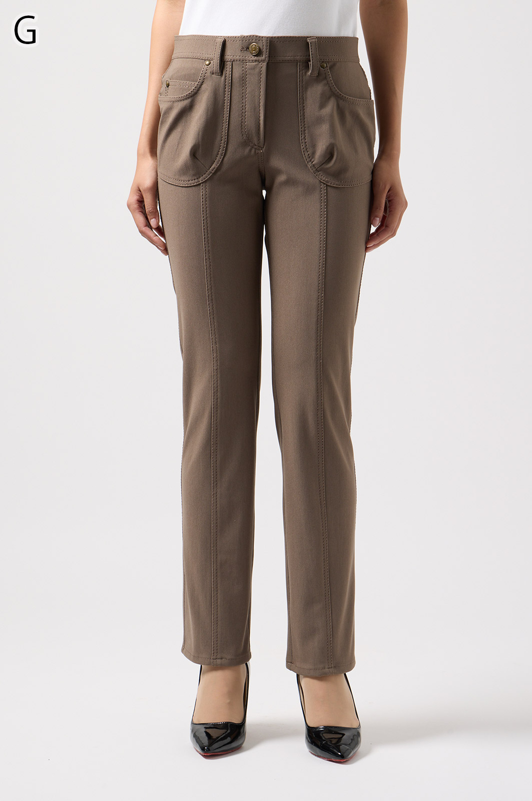 ひんやり快適で乾きやすく、日差しもガード。お手入れラクな高機能素材のパンツ。ストレッチが効いたジーンズ風デザインで動きやすく、ウエストゴムで着脱もラク。脚をすっきり見せるブーツカットと立体感ある8枚接ぎ仕立てで、スタイルアップもばっちり!