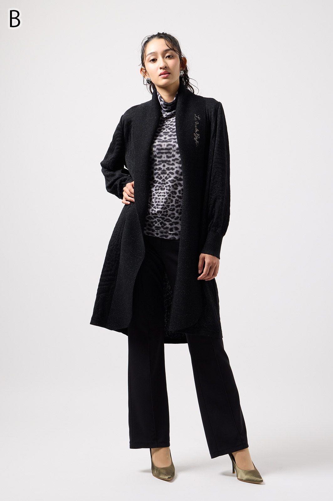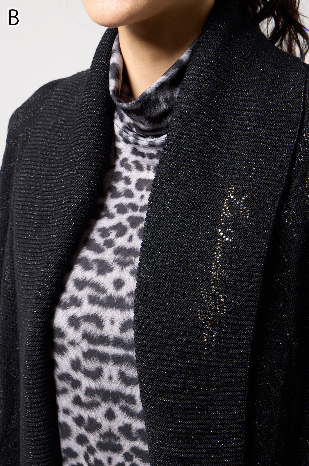 ウールにきらっと光る糸を織り込んだ、アニマル柄の上品ニット。羽織るだけで華やかさがアップし、お出かけやパーティーにもぴったりなエレガントな一枚♪