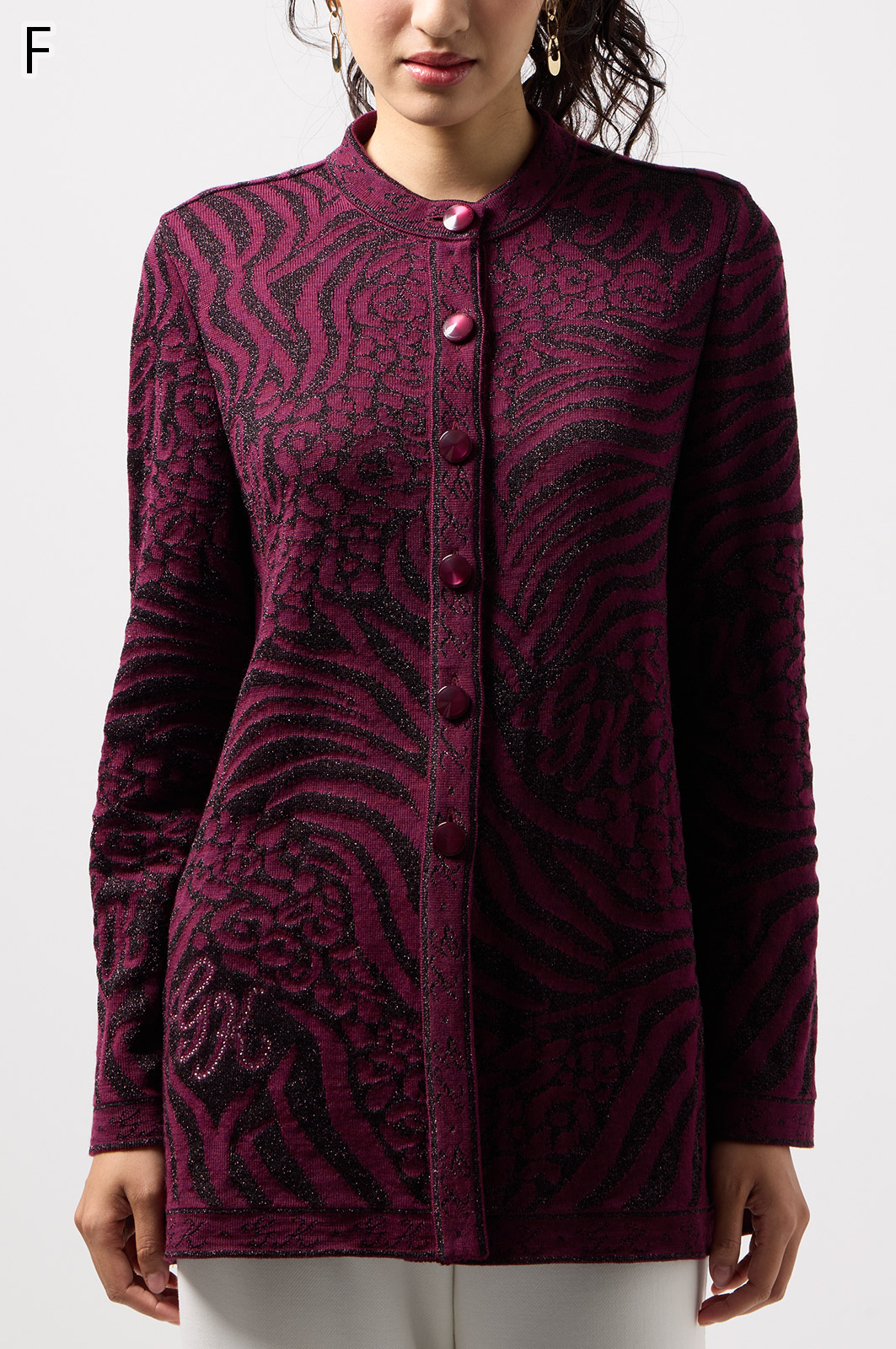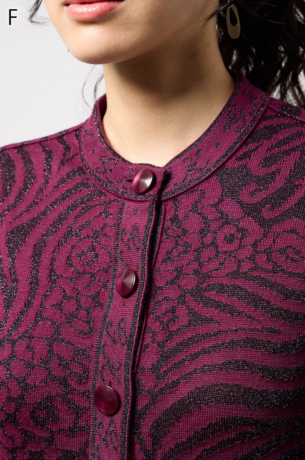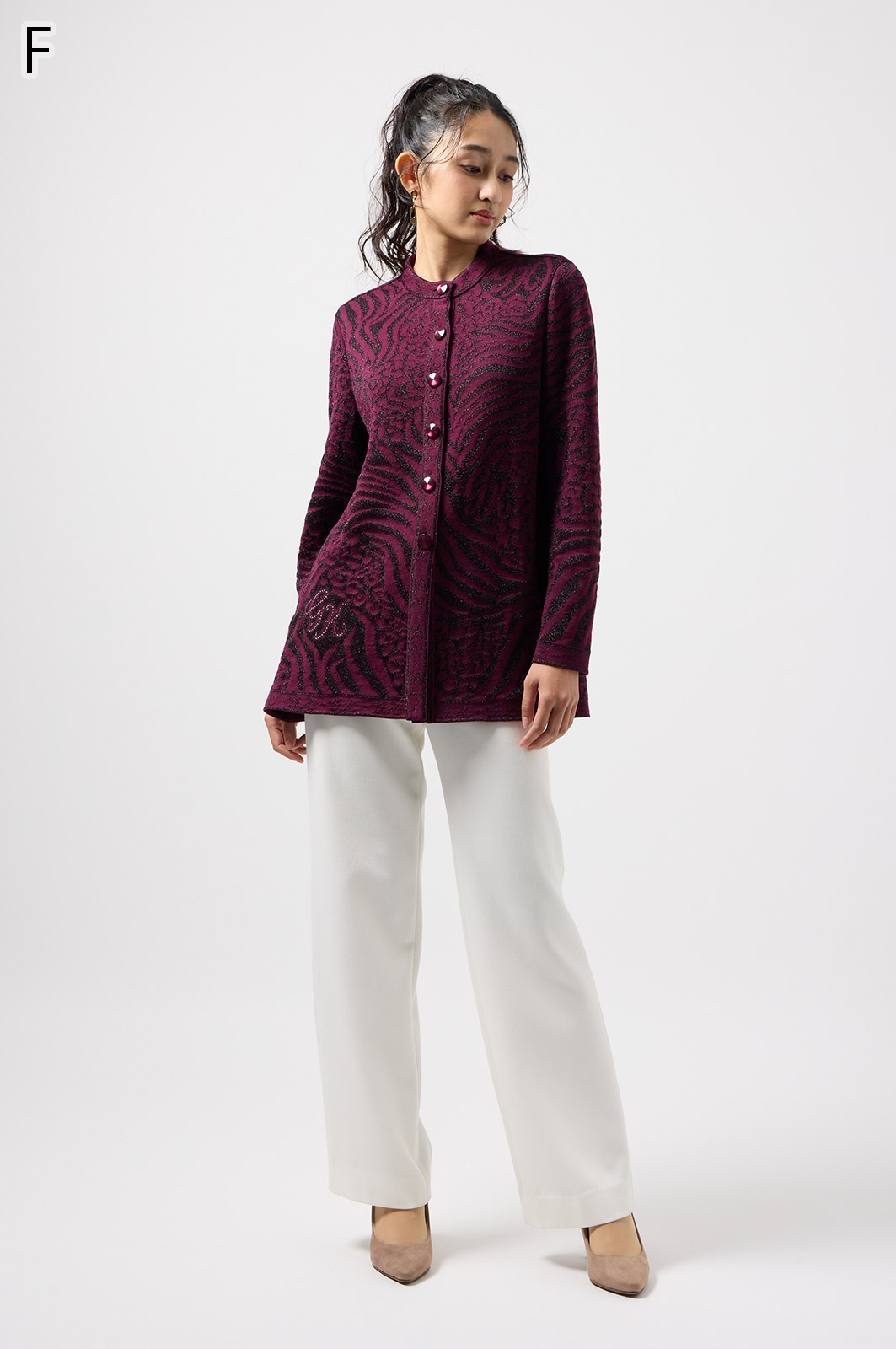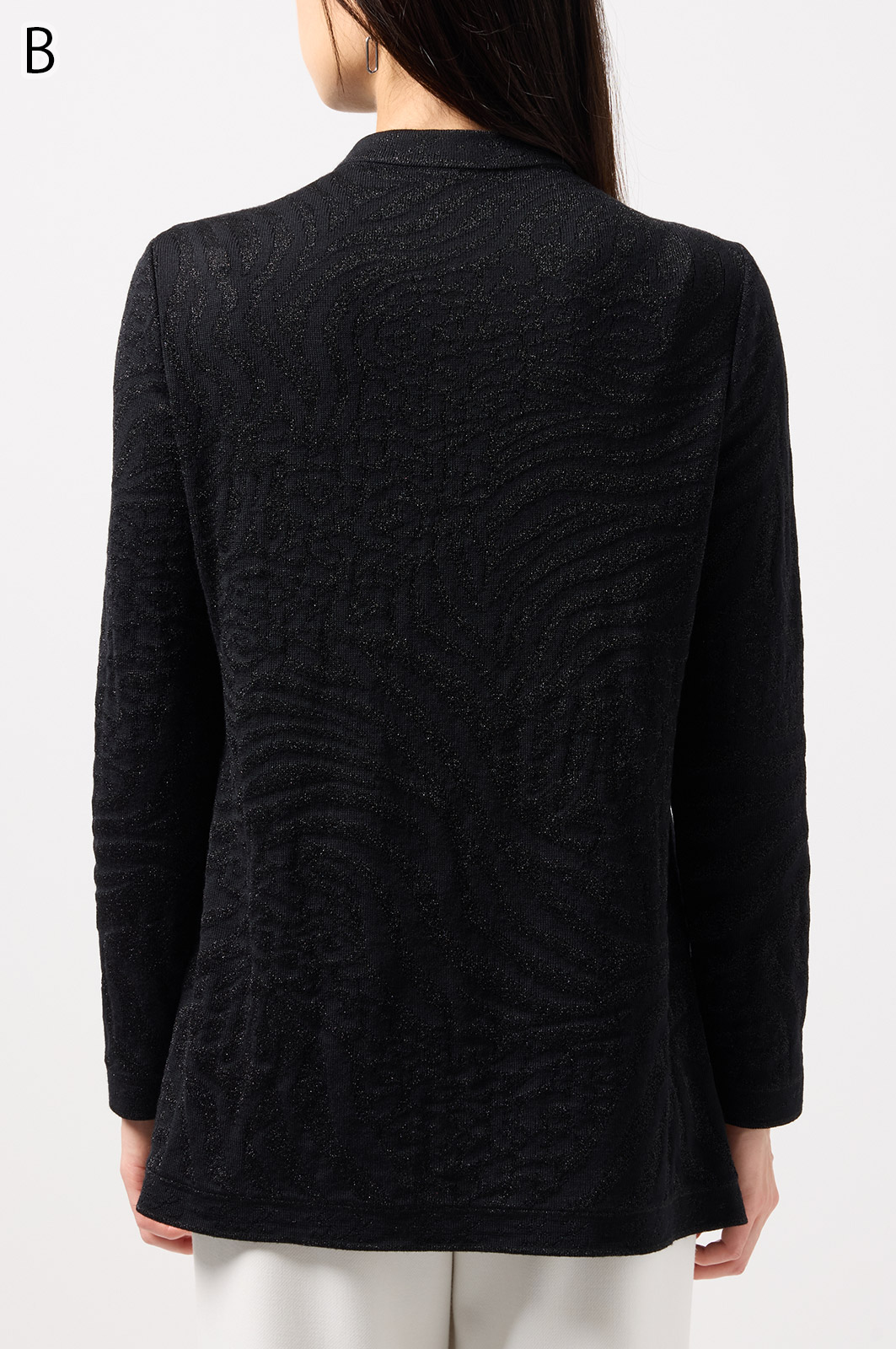 ウールにきらめく糸を織り込んだアニマル柄ニット。華やかで立体感のある編み模様が魅力です。特別な日のおしゃれにもぴったりな、大人のための主役トップス。