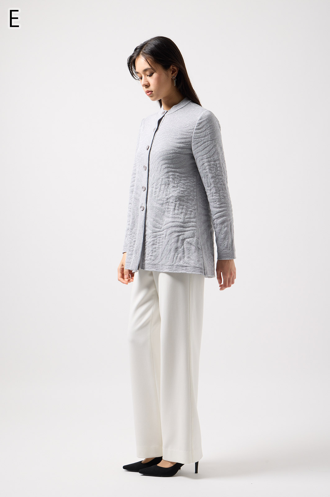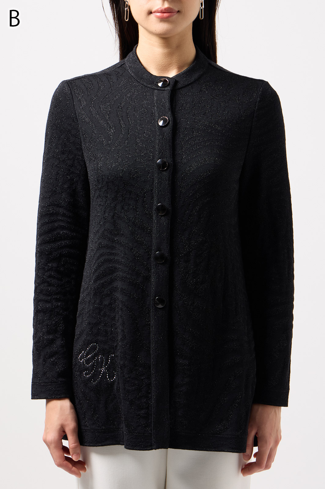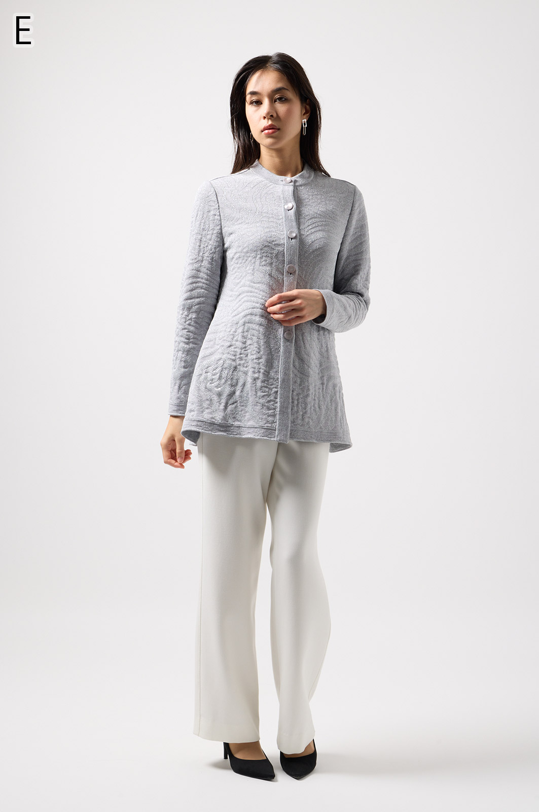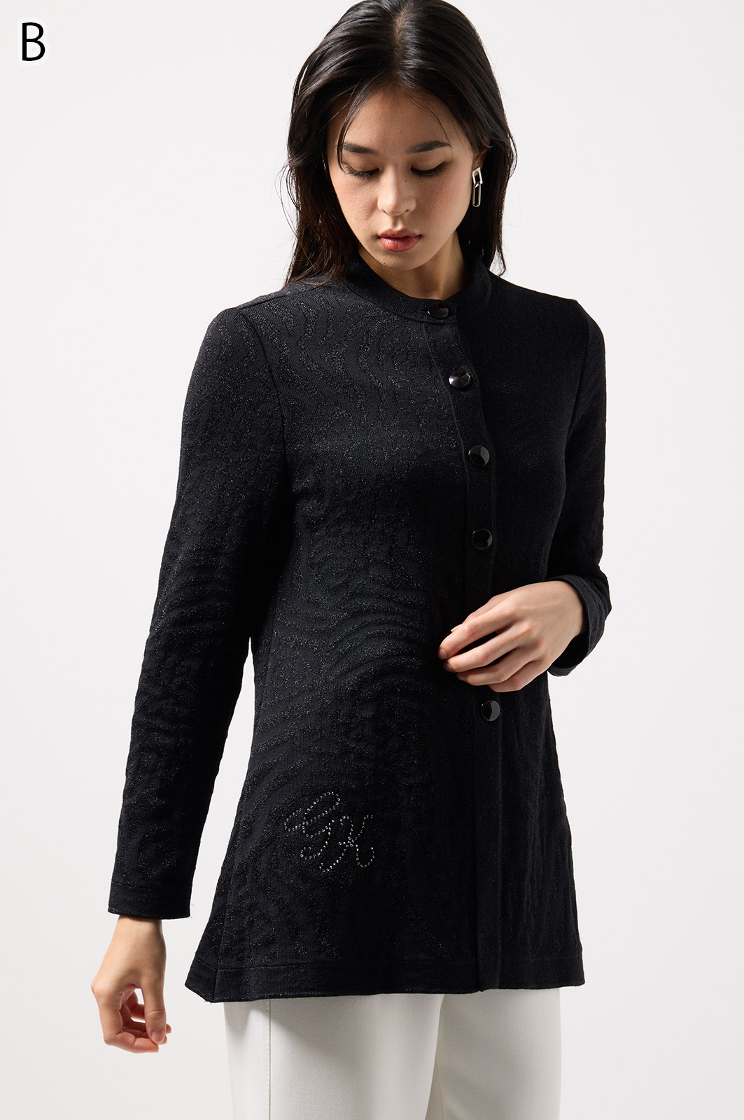 ウールにきらめく糸を織り込んだアニマル柄ニット。華やかで立体感のある編み模様が魅力です。特別な日のおしゃれにもぴったりな、大人のための主役トップス。
