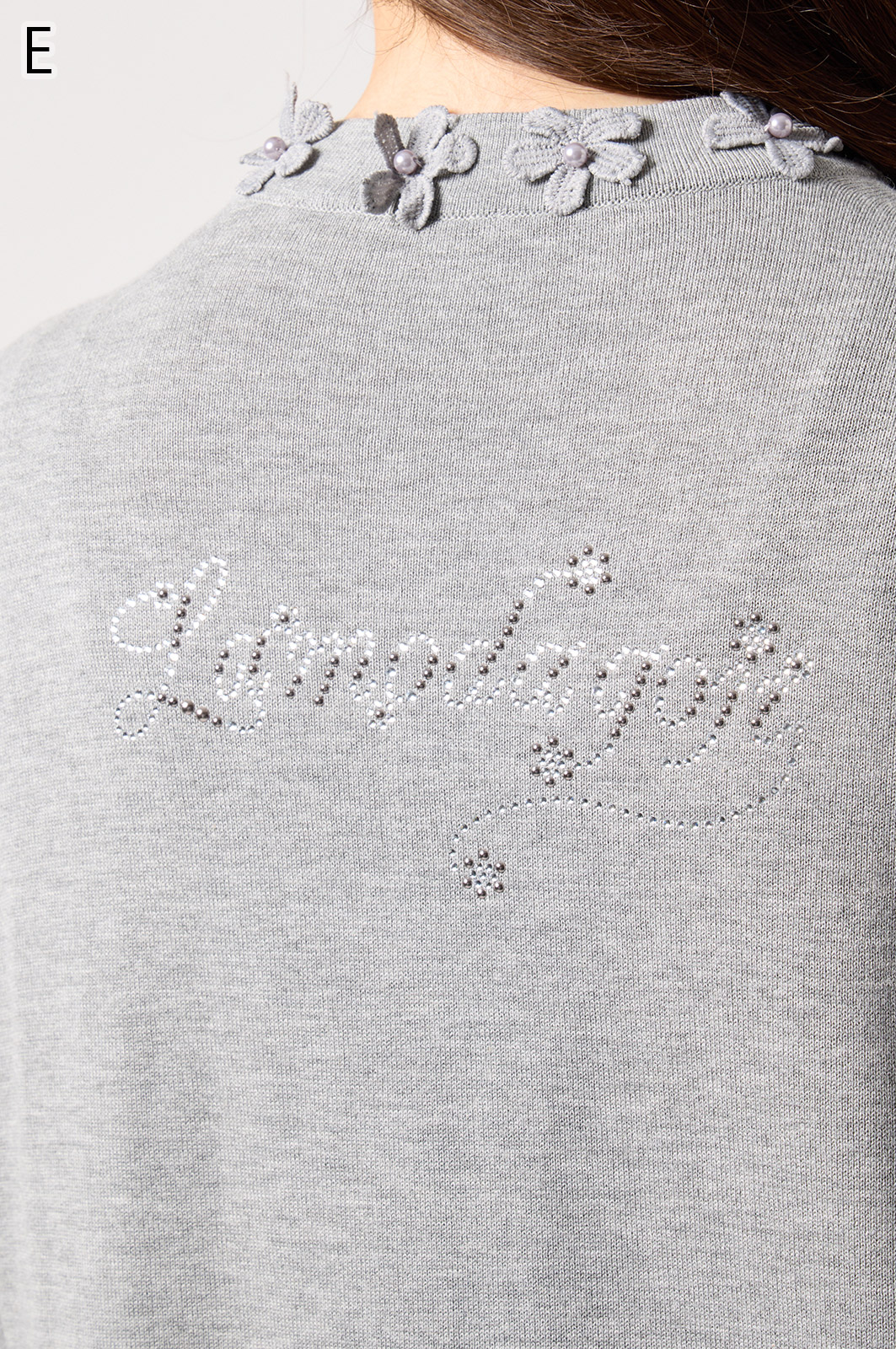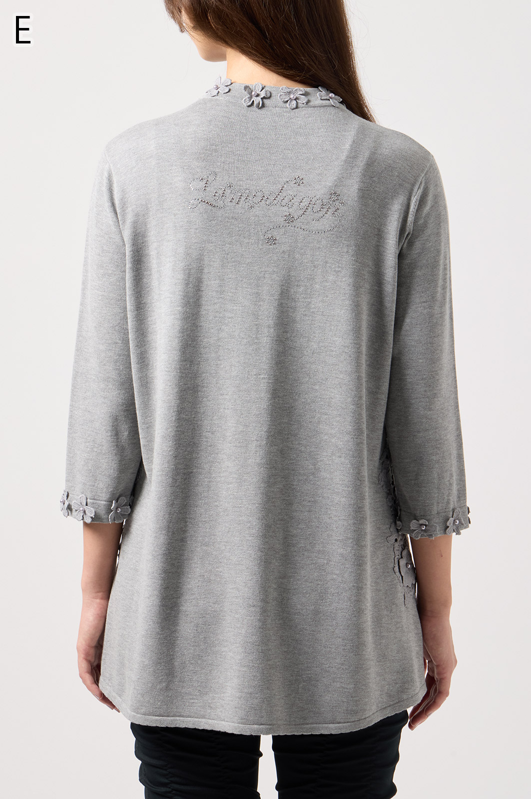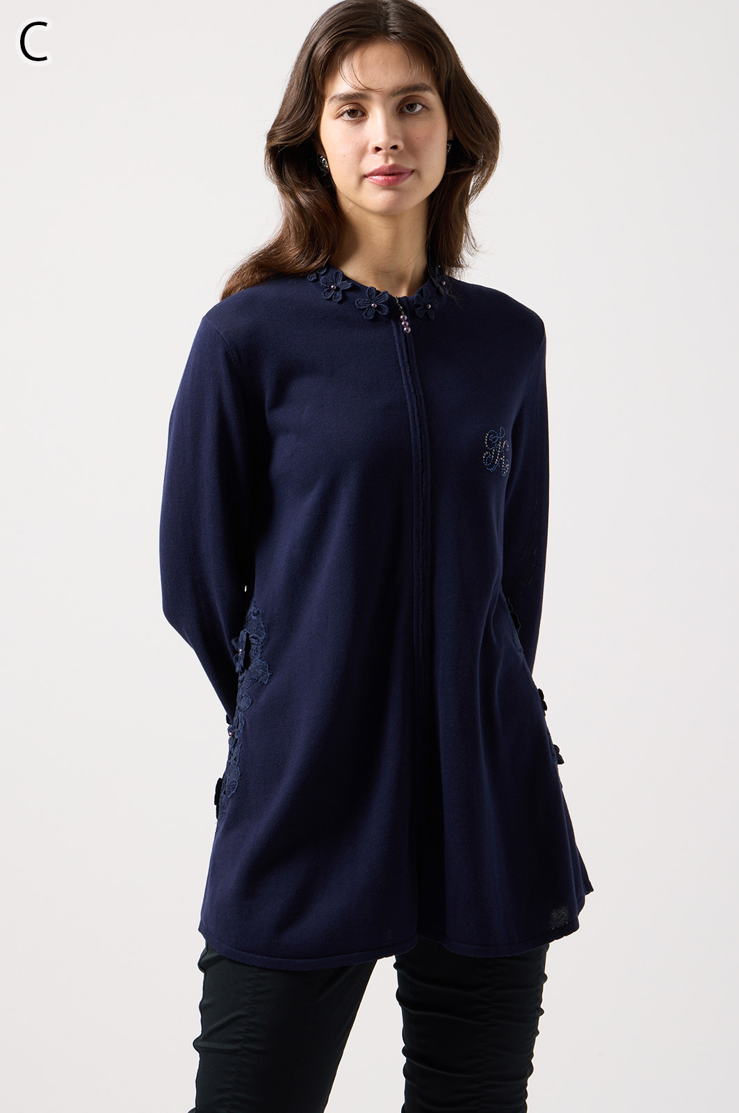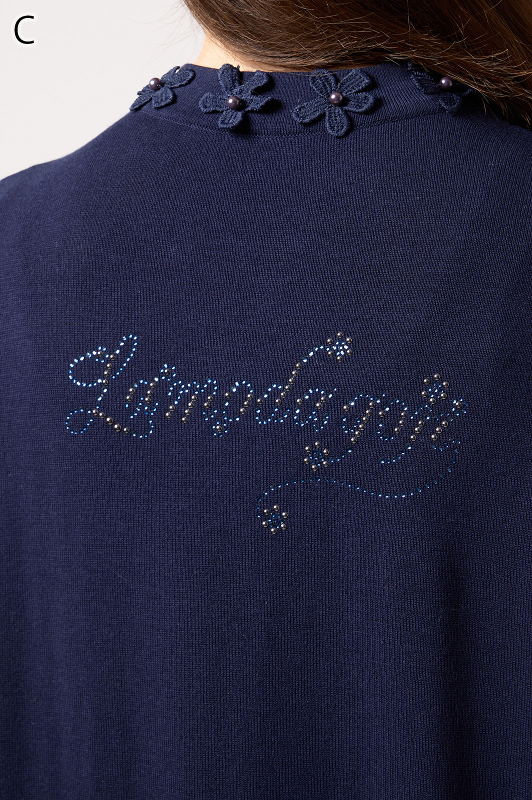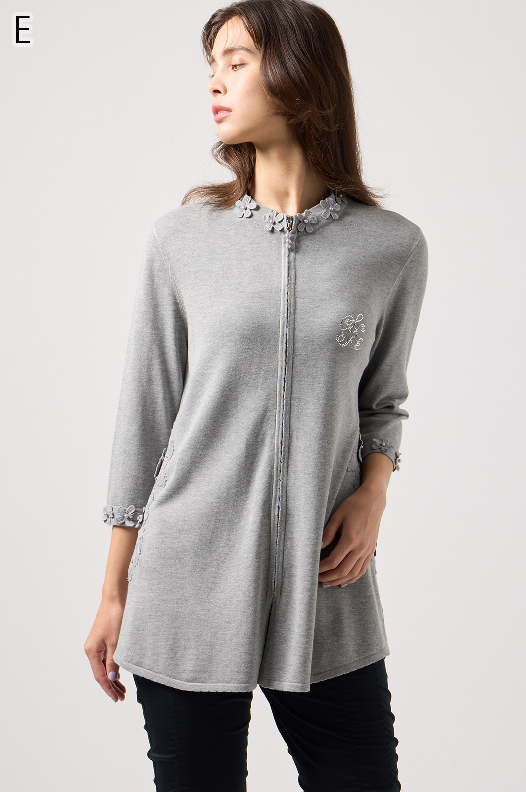 やわらかな綿混ニットに、同じ色のレースを組み合わせた花モチーフがポイント。可憐でやさしい印象のカーディガンは、羽織るだけでふんわり女性らしさをプラスしてくれます♪