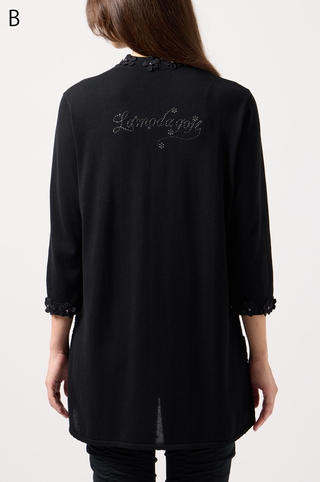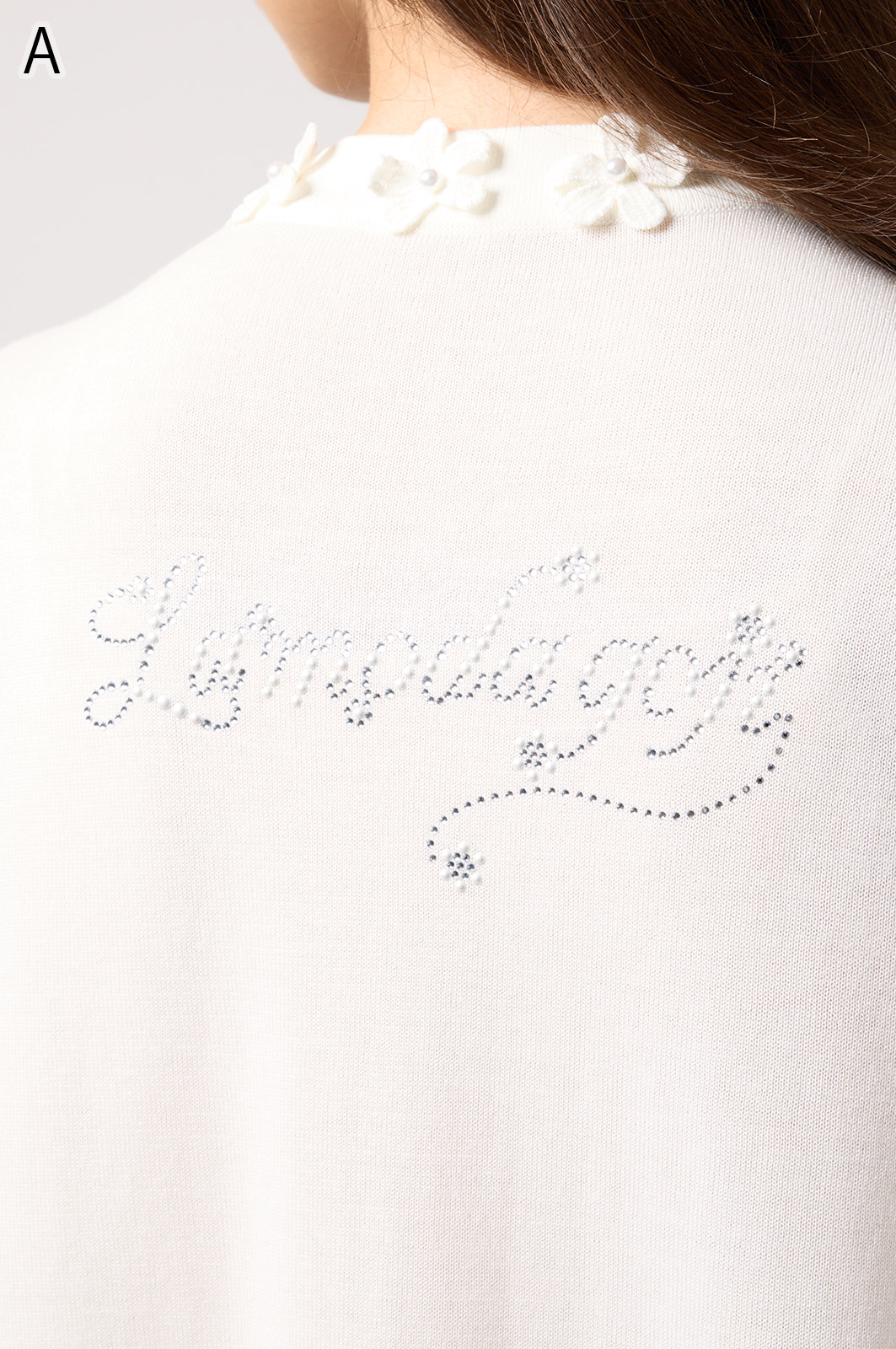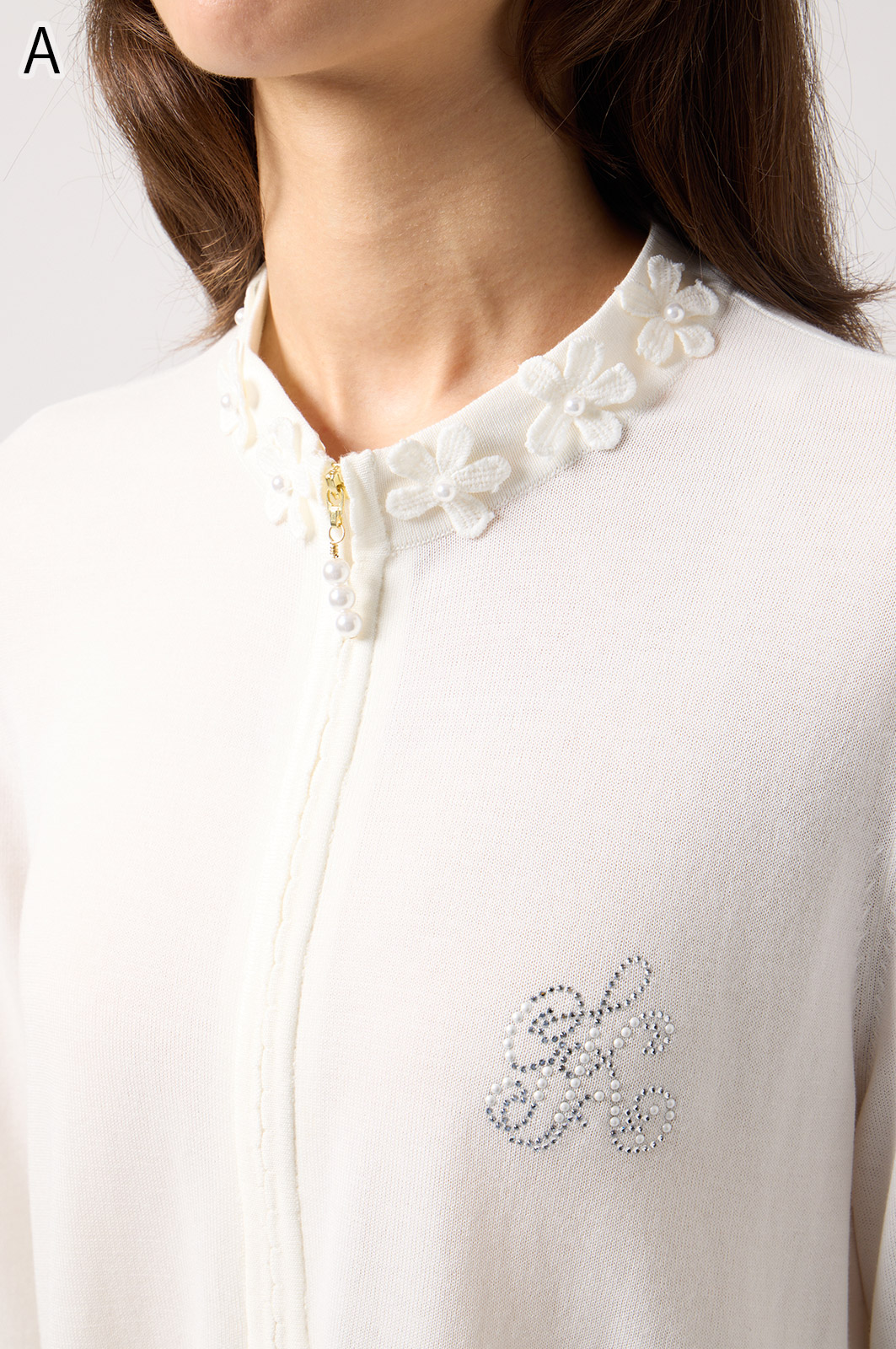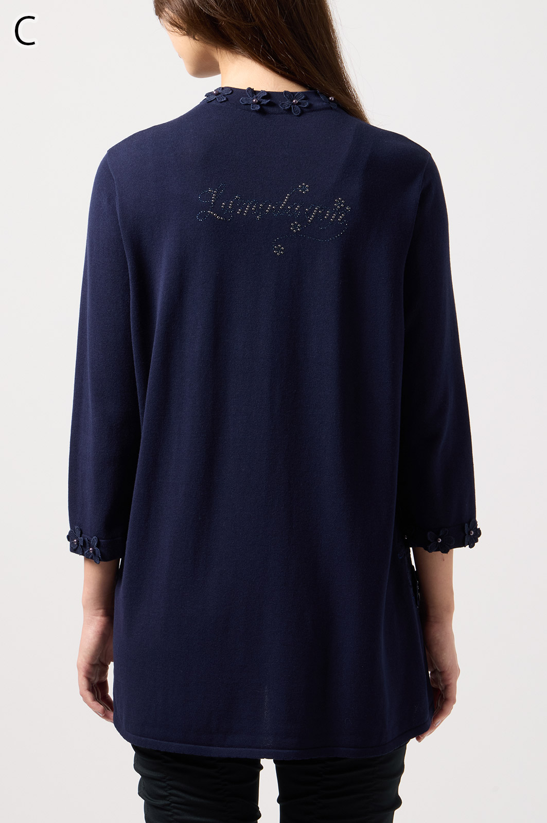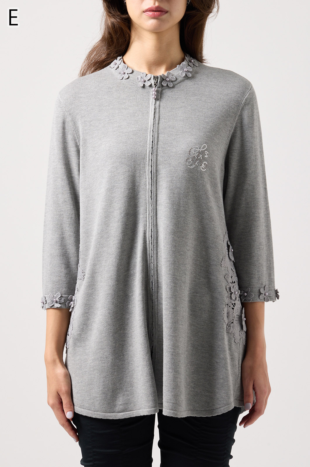 やわらかな綿混ニットに、同じ色のレースを組み合わせた花モチーフがポイント。可憐でやさしい印象のカーディガンは、羽織るだけでふんわり女性らしさをプラスしてくれます♪