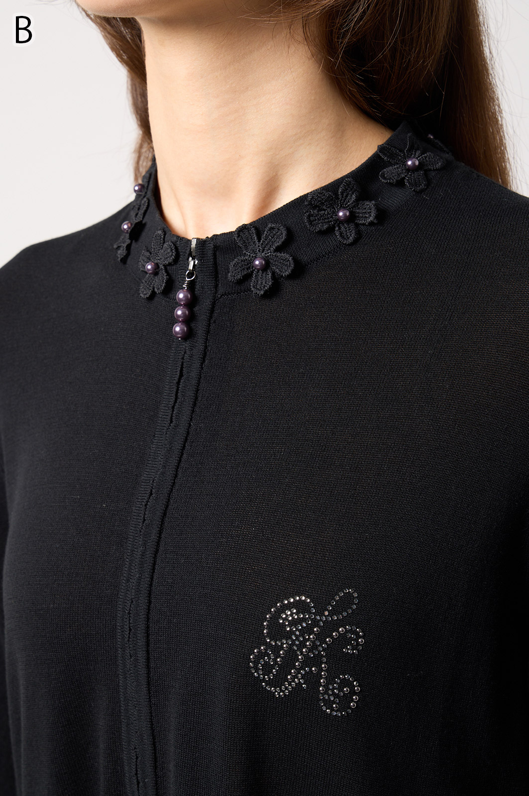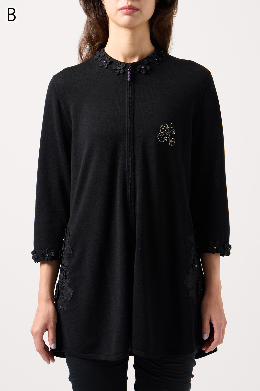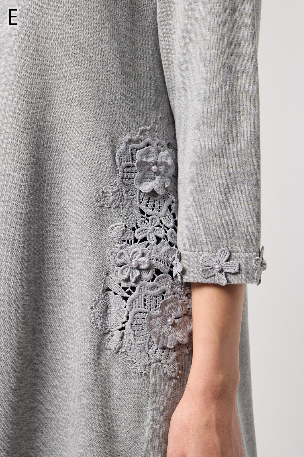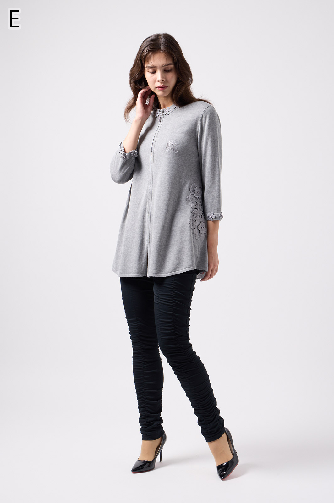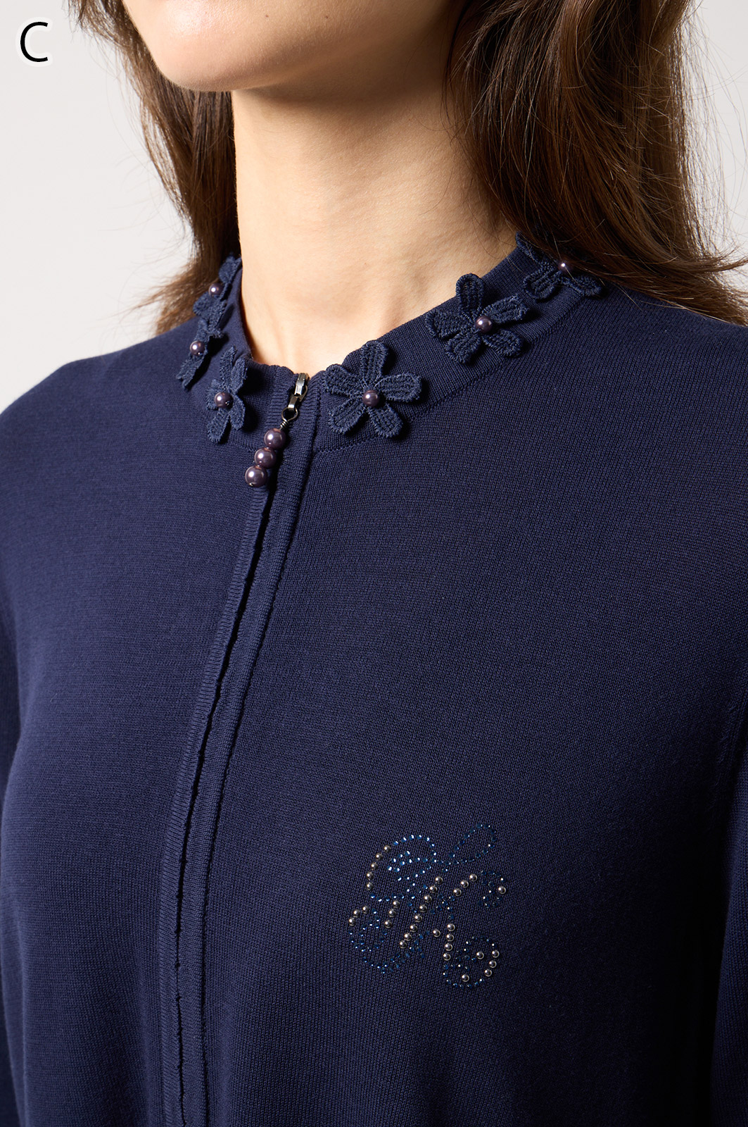 やわらかな綿混ニットに、同じ色のレースを組み合わせた花モチーフがポイント。可憐でやさしい印象のカーディガンは、羽織るだけでふんわり女性らしさをプラスしてくれます♪