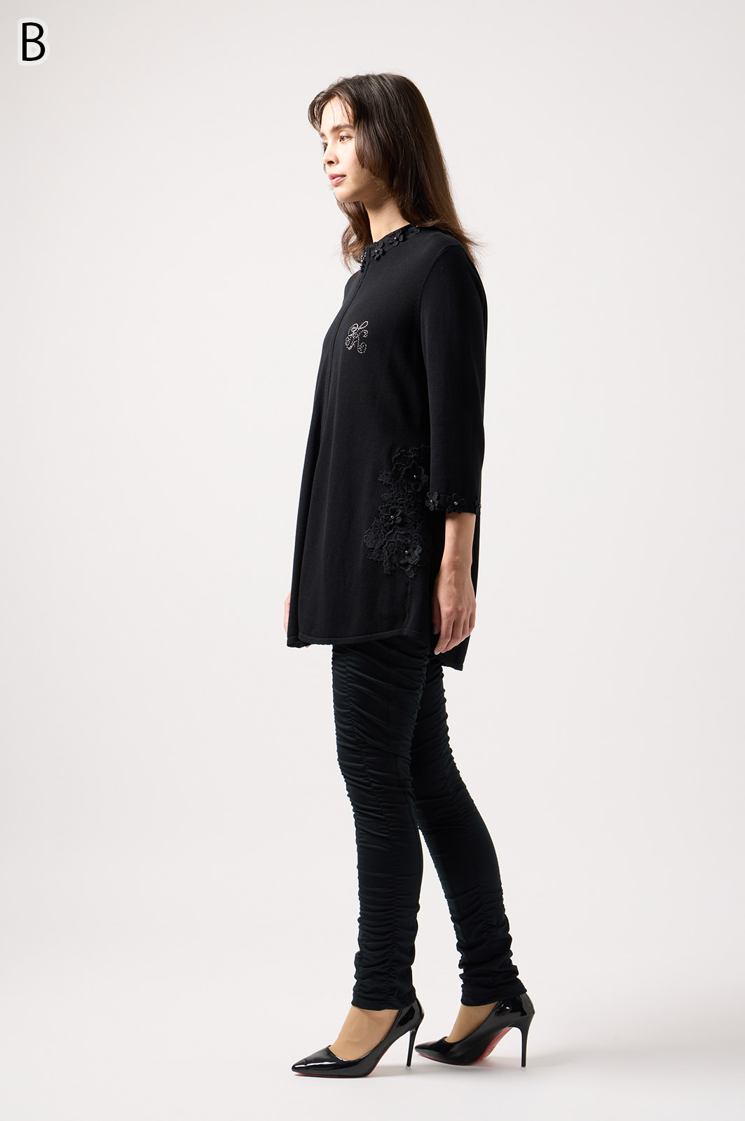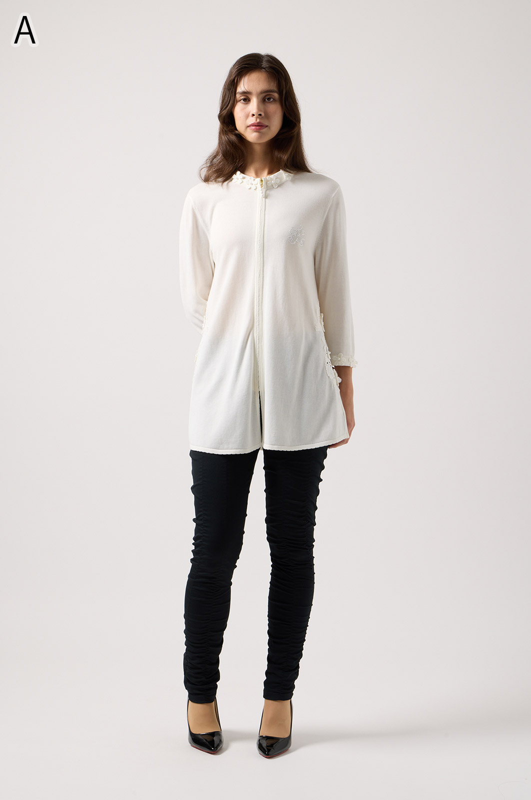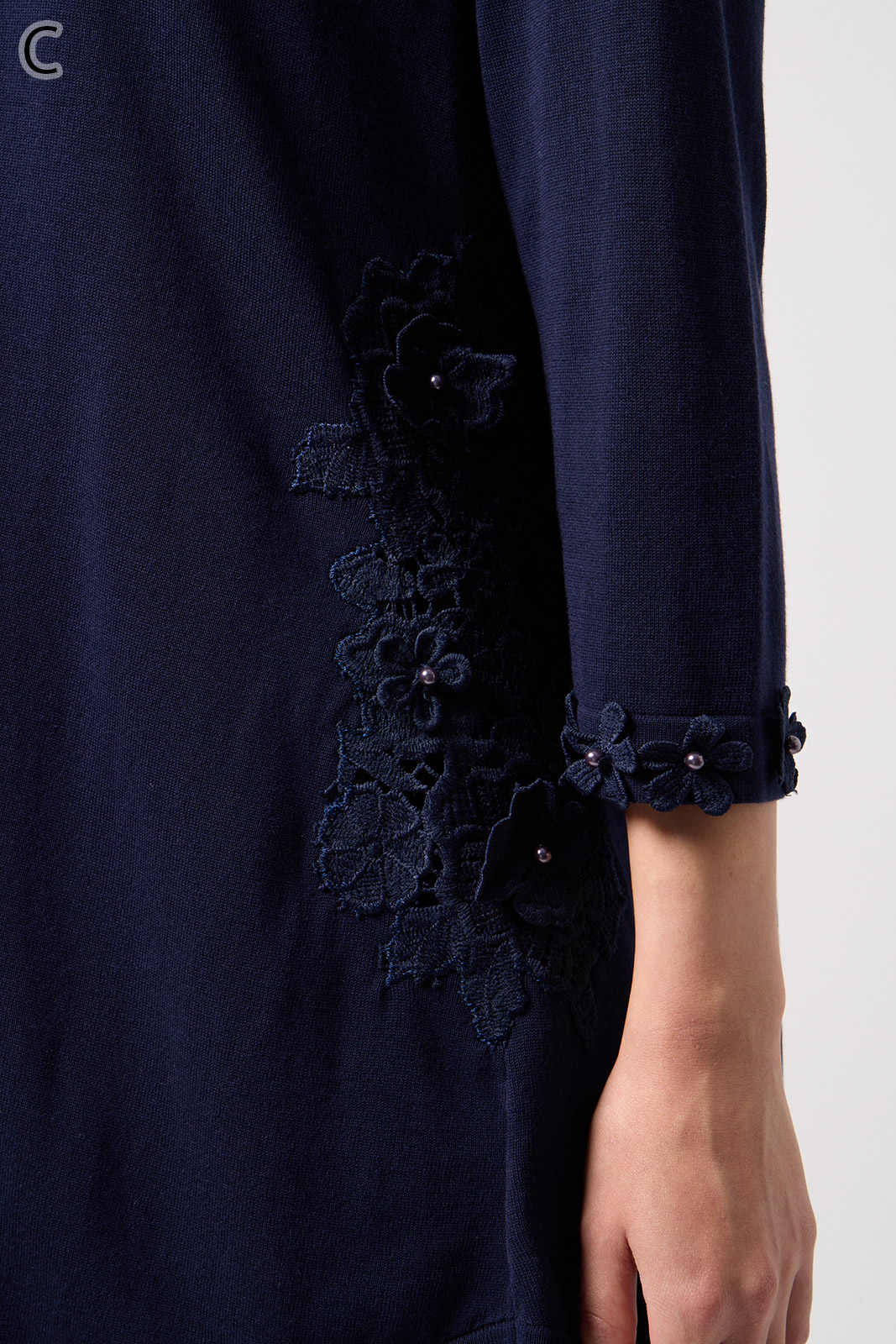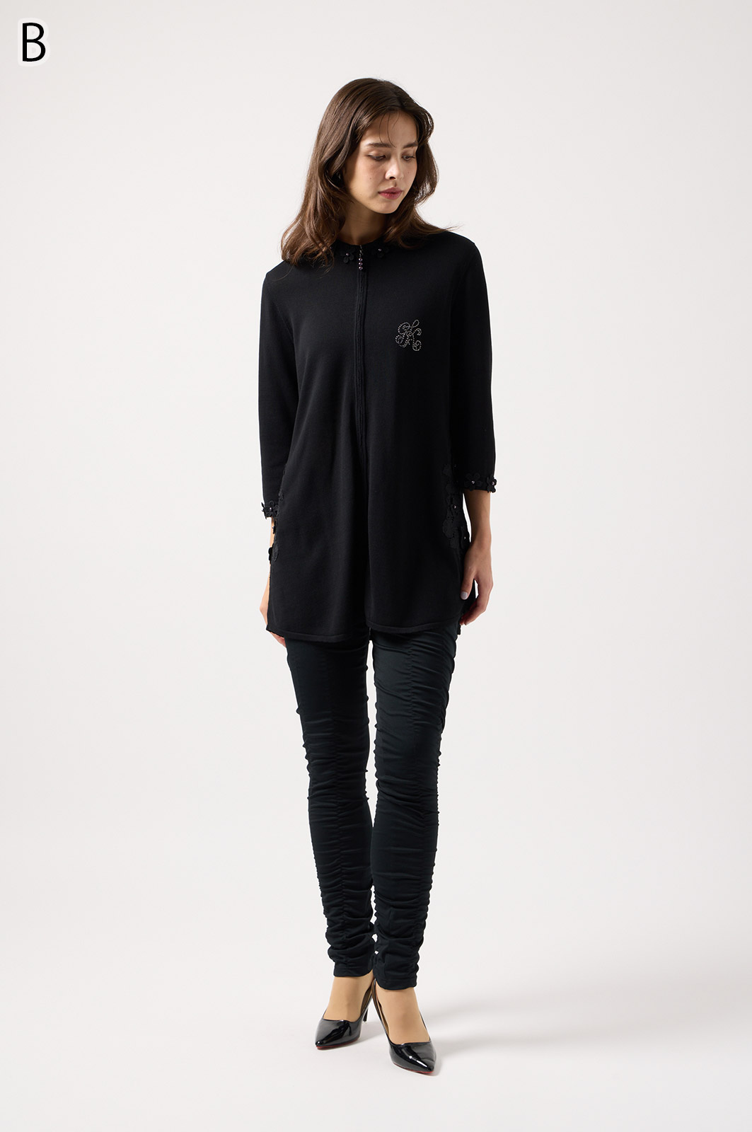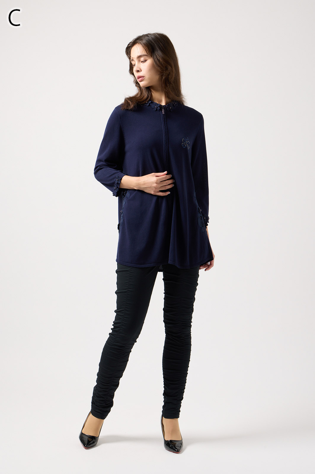 やわらかな綿混ニットに、同じ色のレースを組み合わせた花モチーフがポイント。可憐でやさしい印象のカーディガンは、羽織るだけでふんわり女性らしさをプラスしてくれます♪