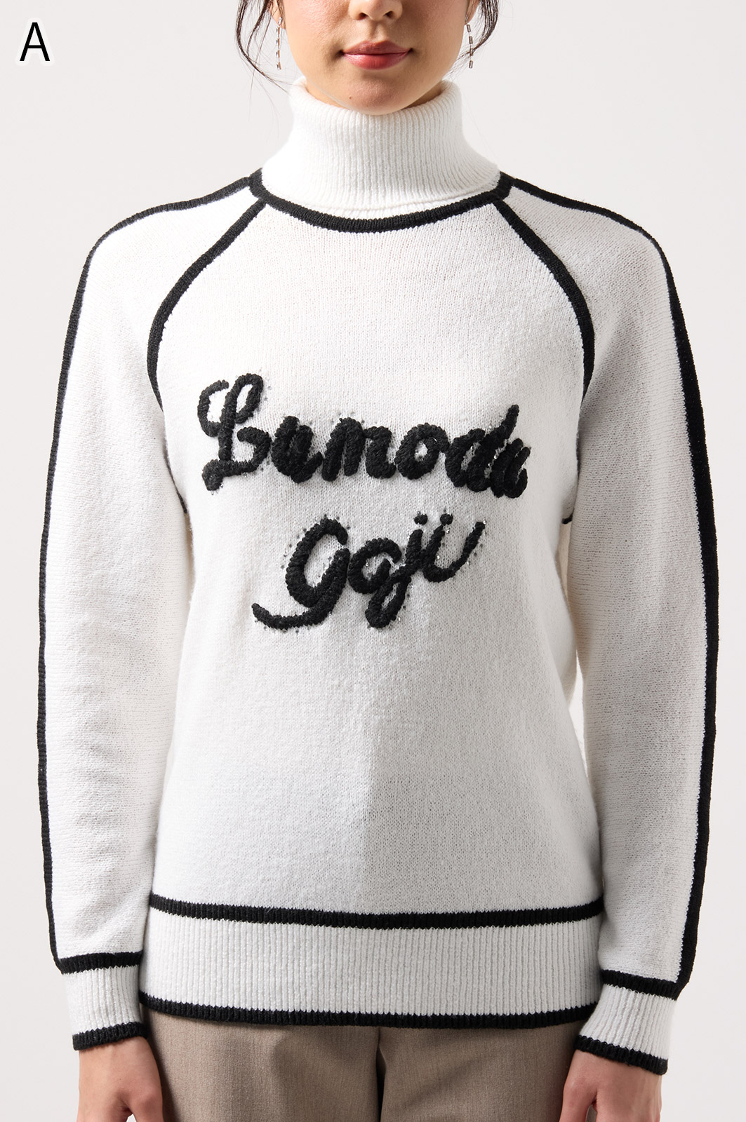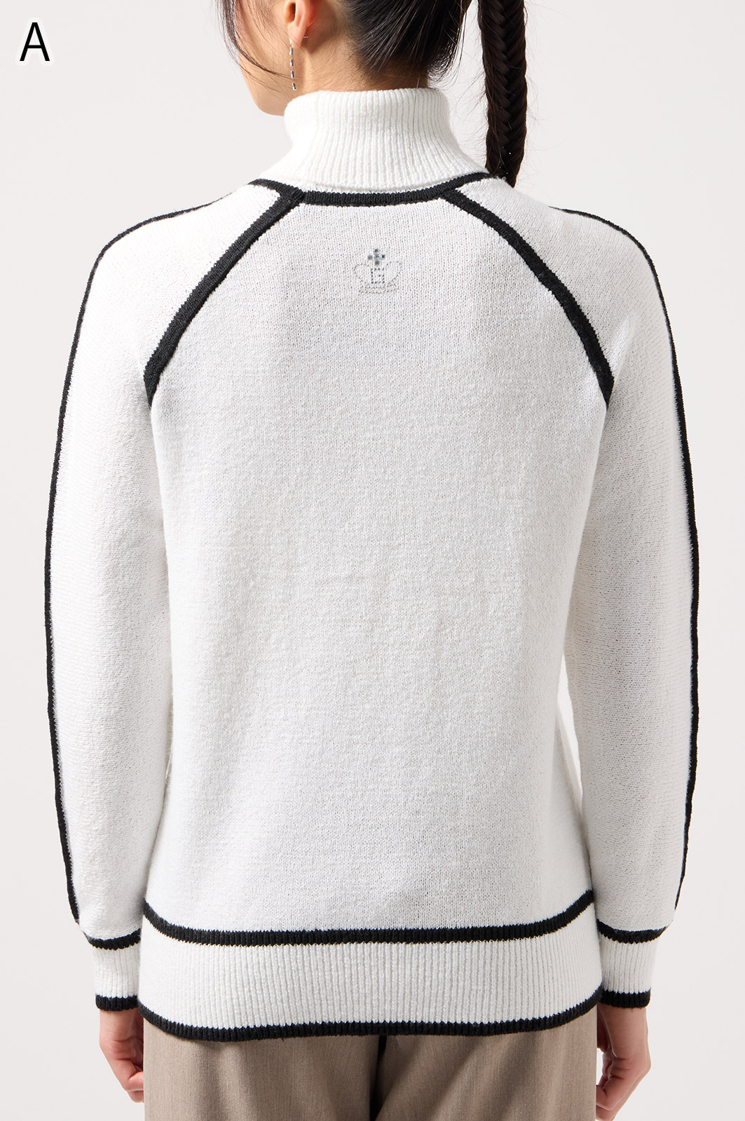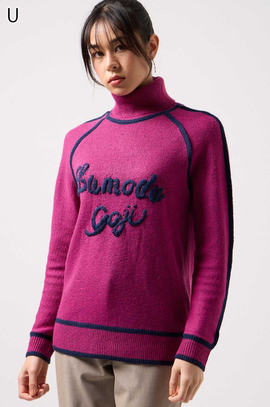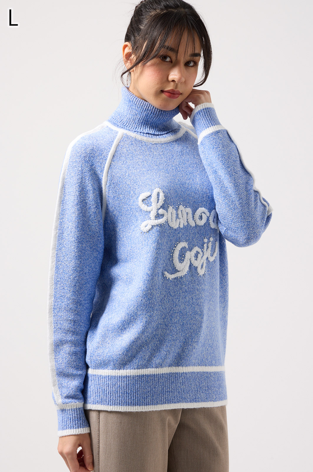 配色デザインがスポーティーな印象を演出。ロゴ刺しゅうがアクセントになった、冬に欠かせないあたたかセーター。