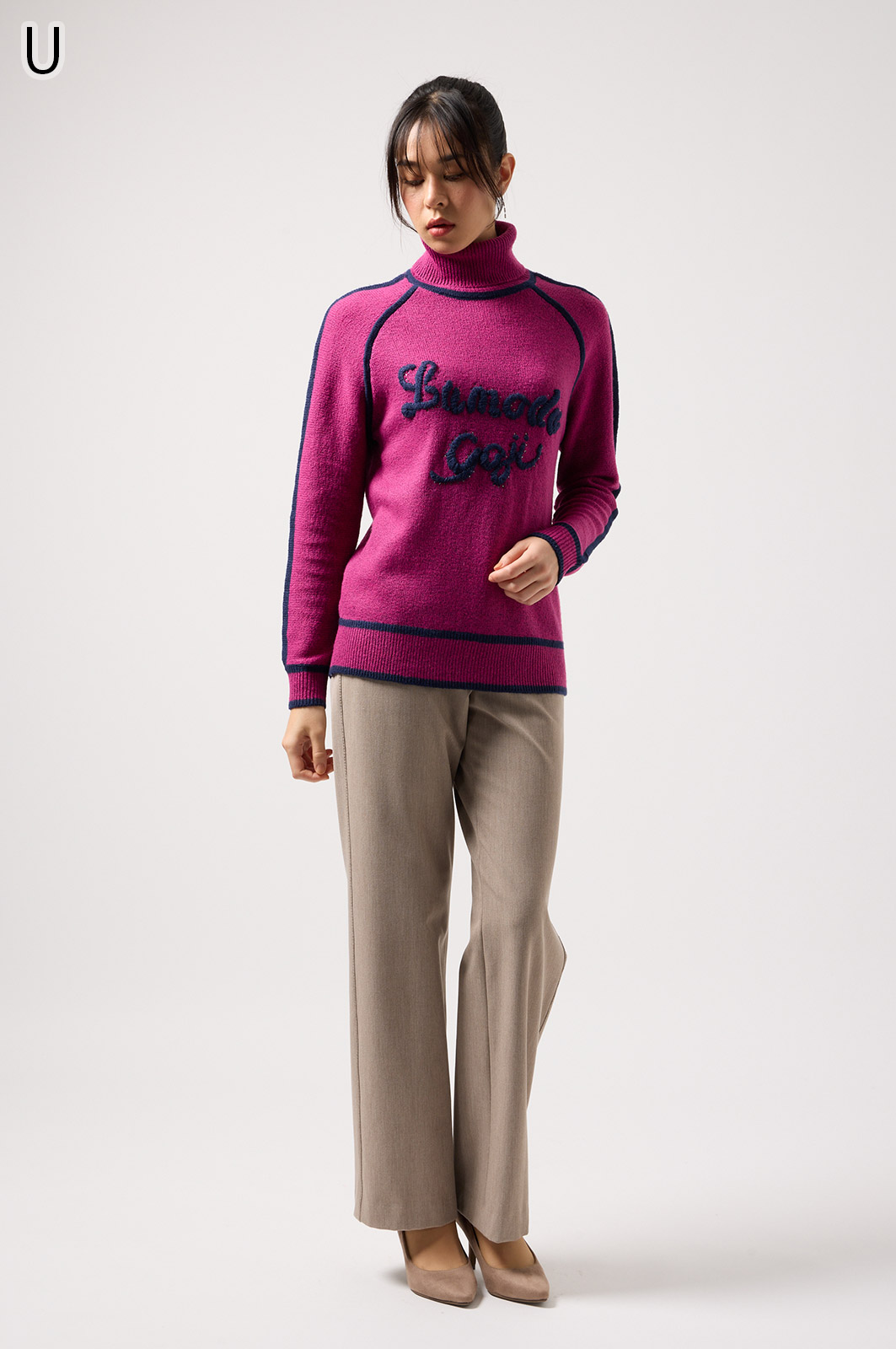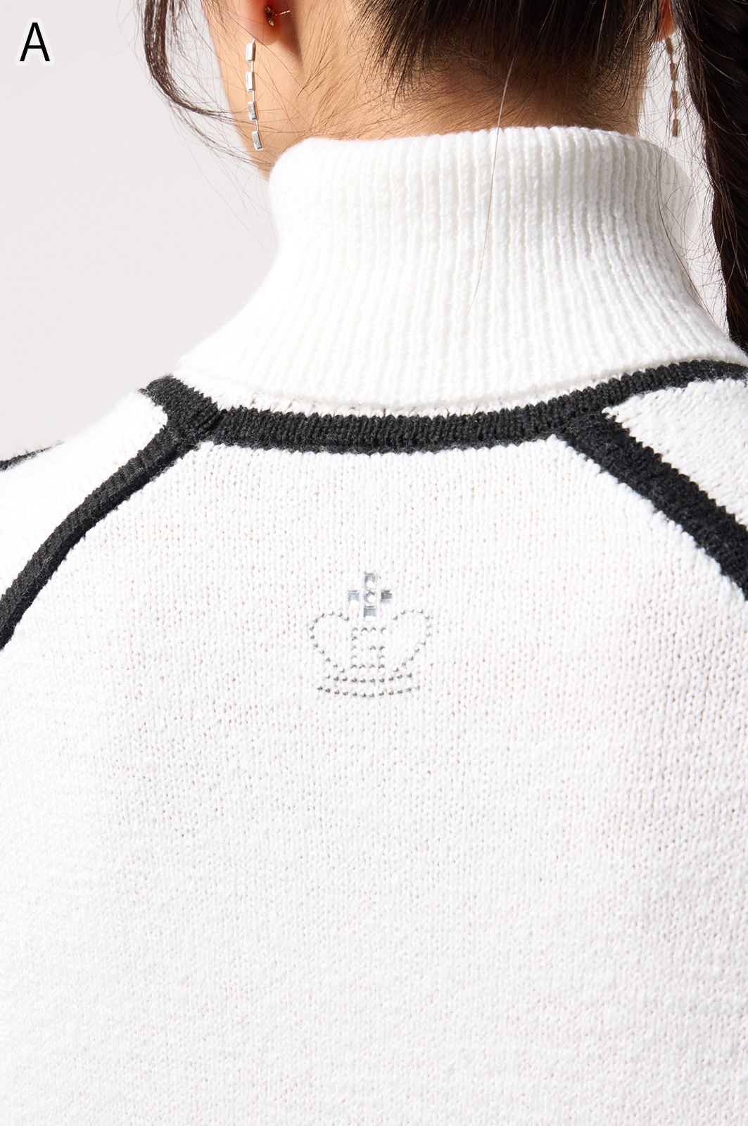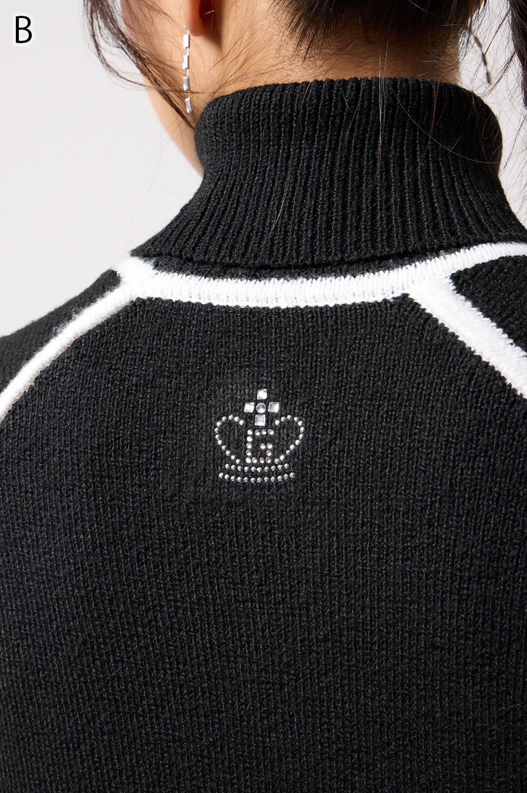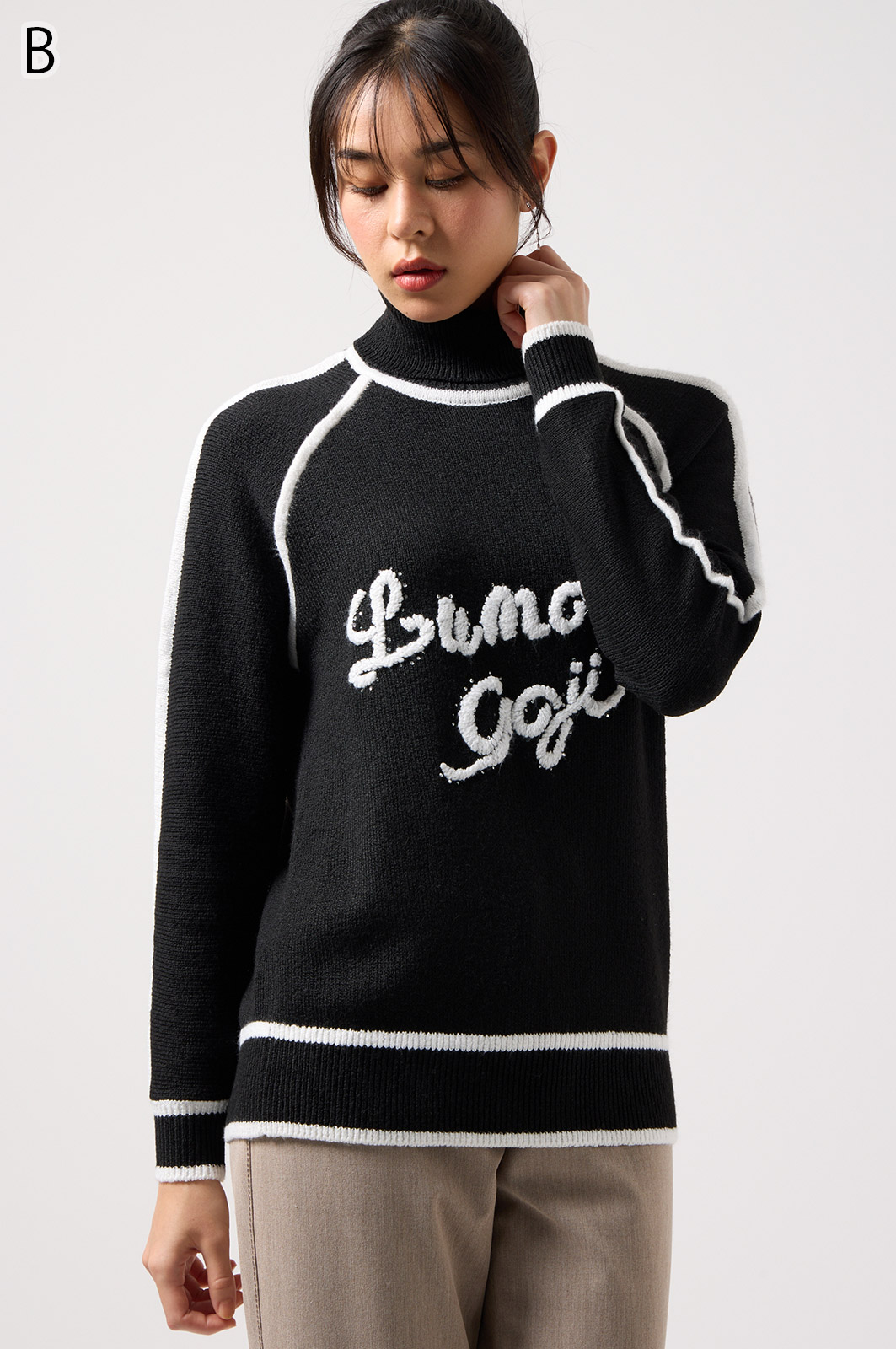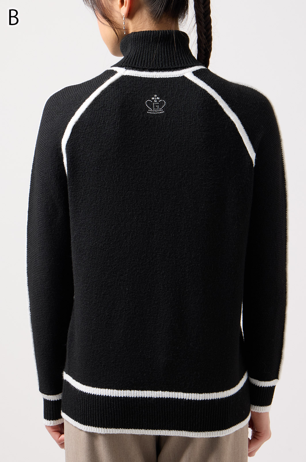 配色デザインがスポーティーな印象を演出。ロゴ刺しゅうがアクセントになった、冬に欠かせないあたたかセーター。