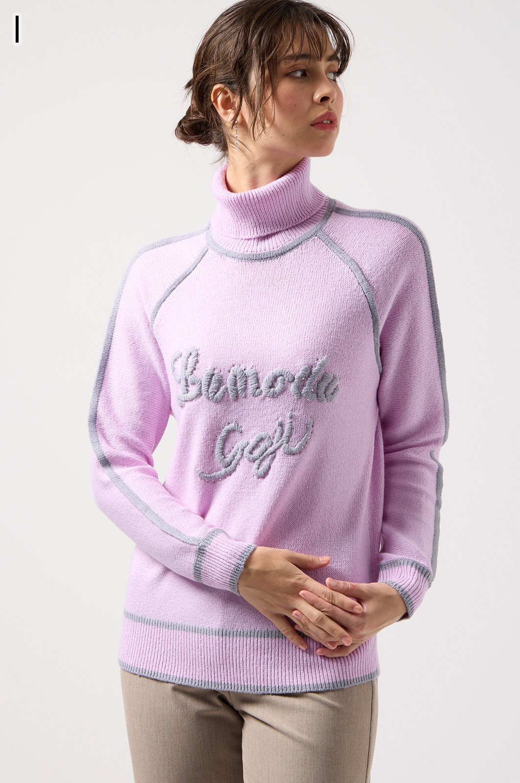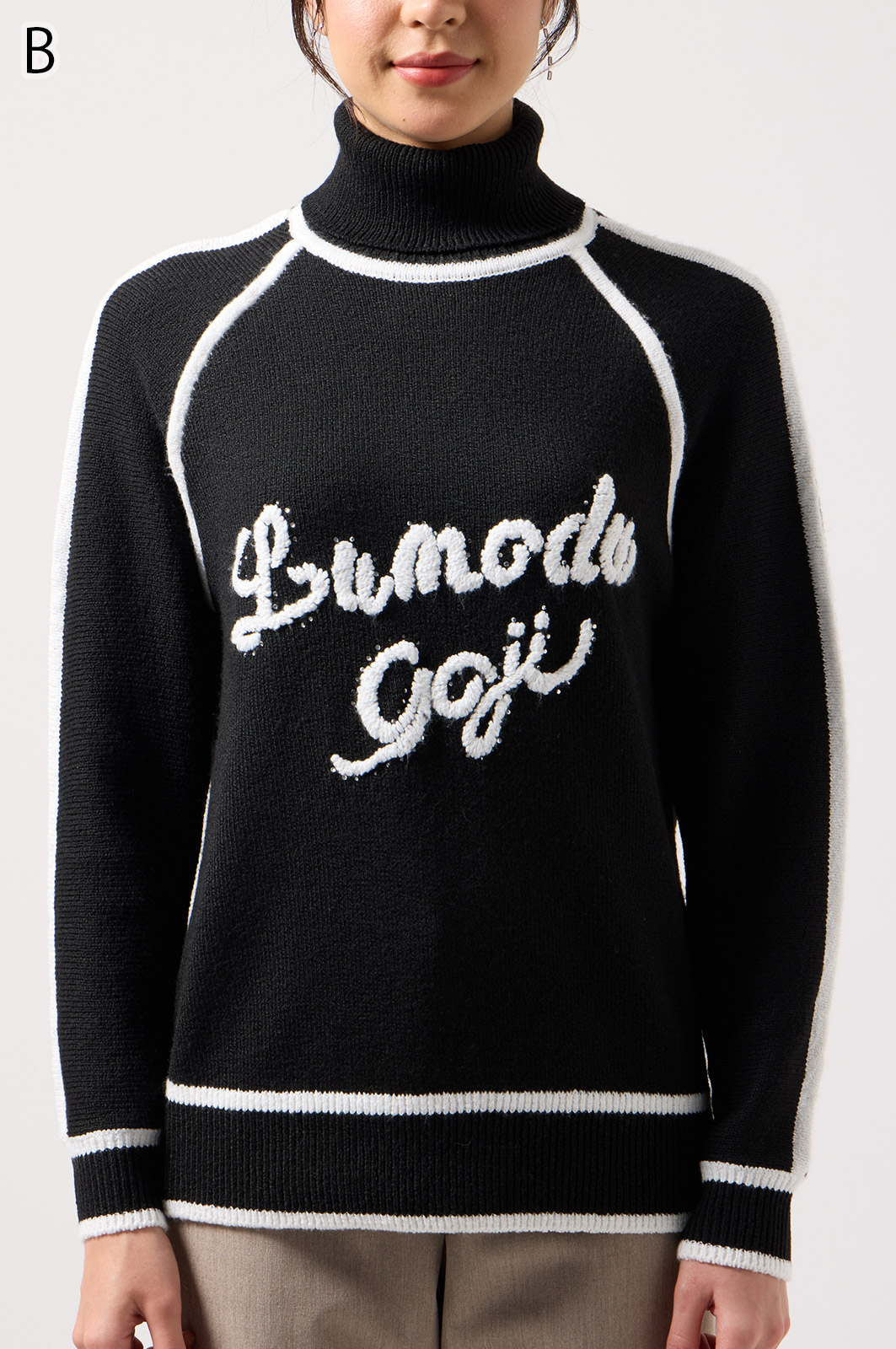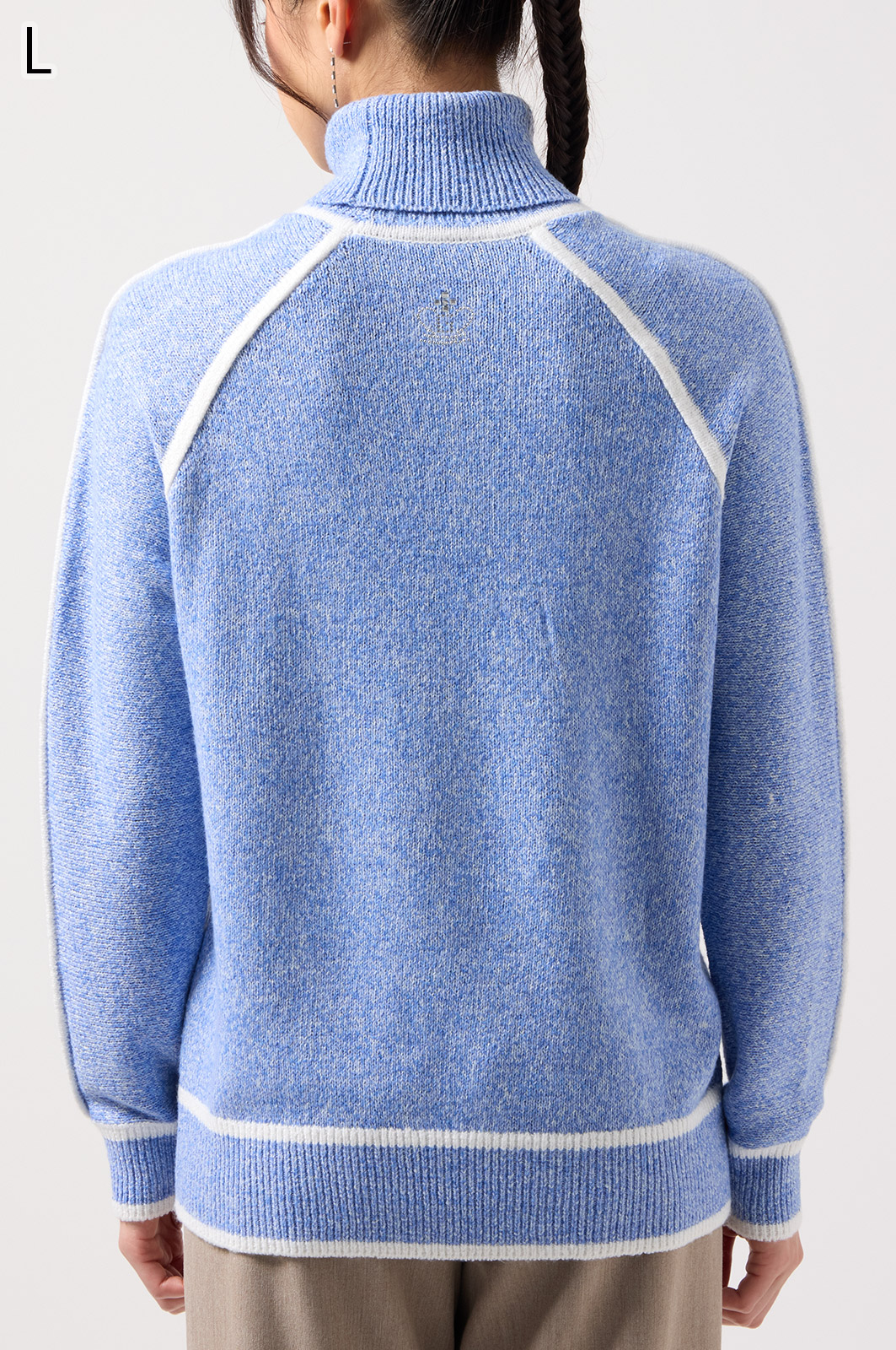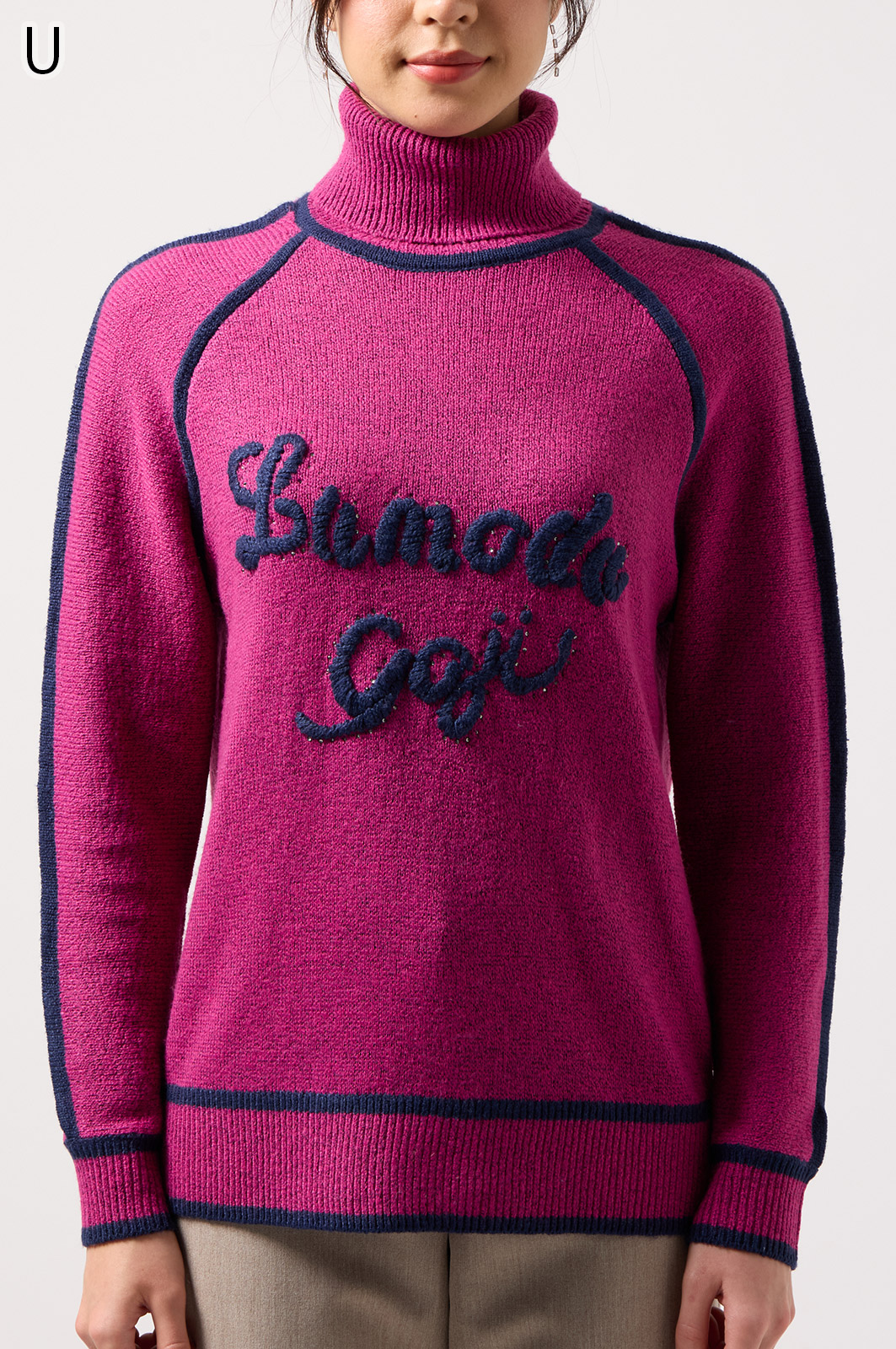 配色デザインがスポーティーな印象を演出。ロゴ刺しゅうがアクセントになった、冬に欠かせないあたたかセーター。