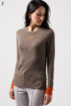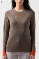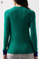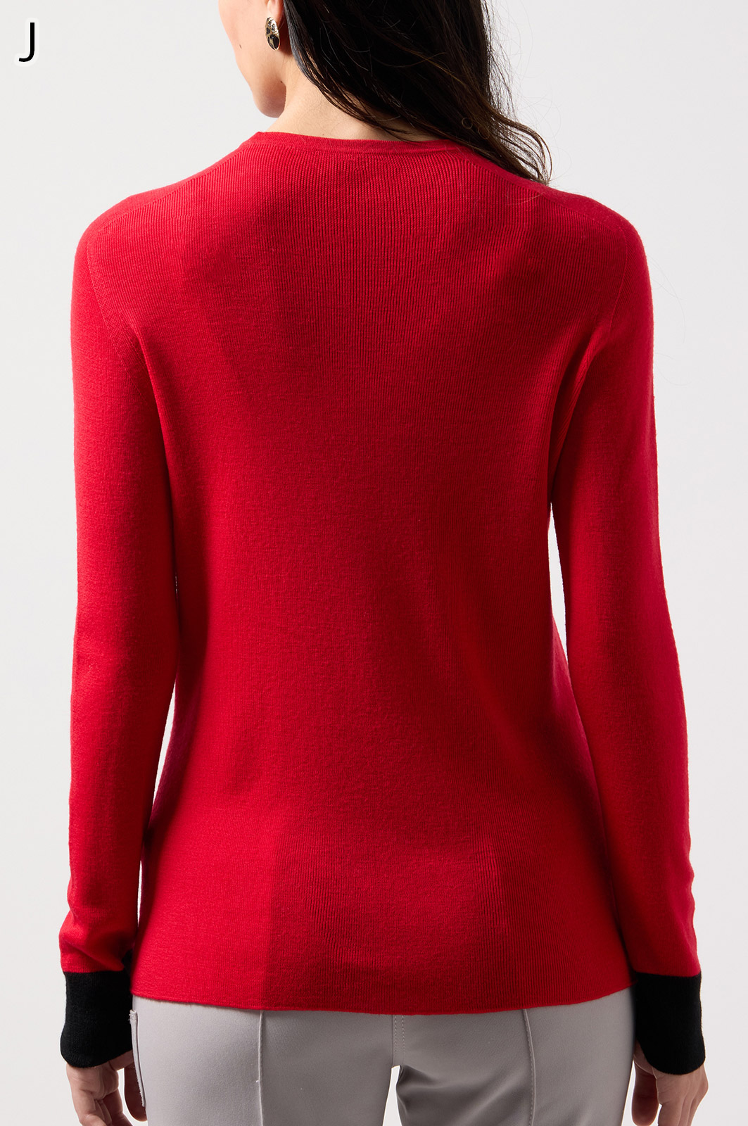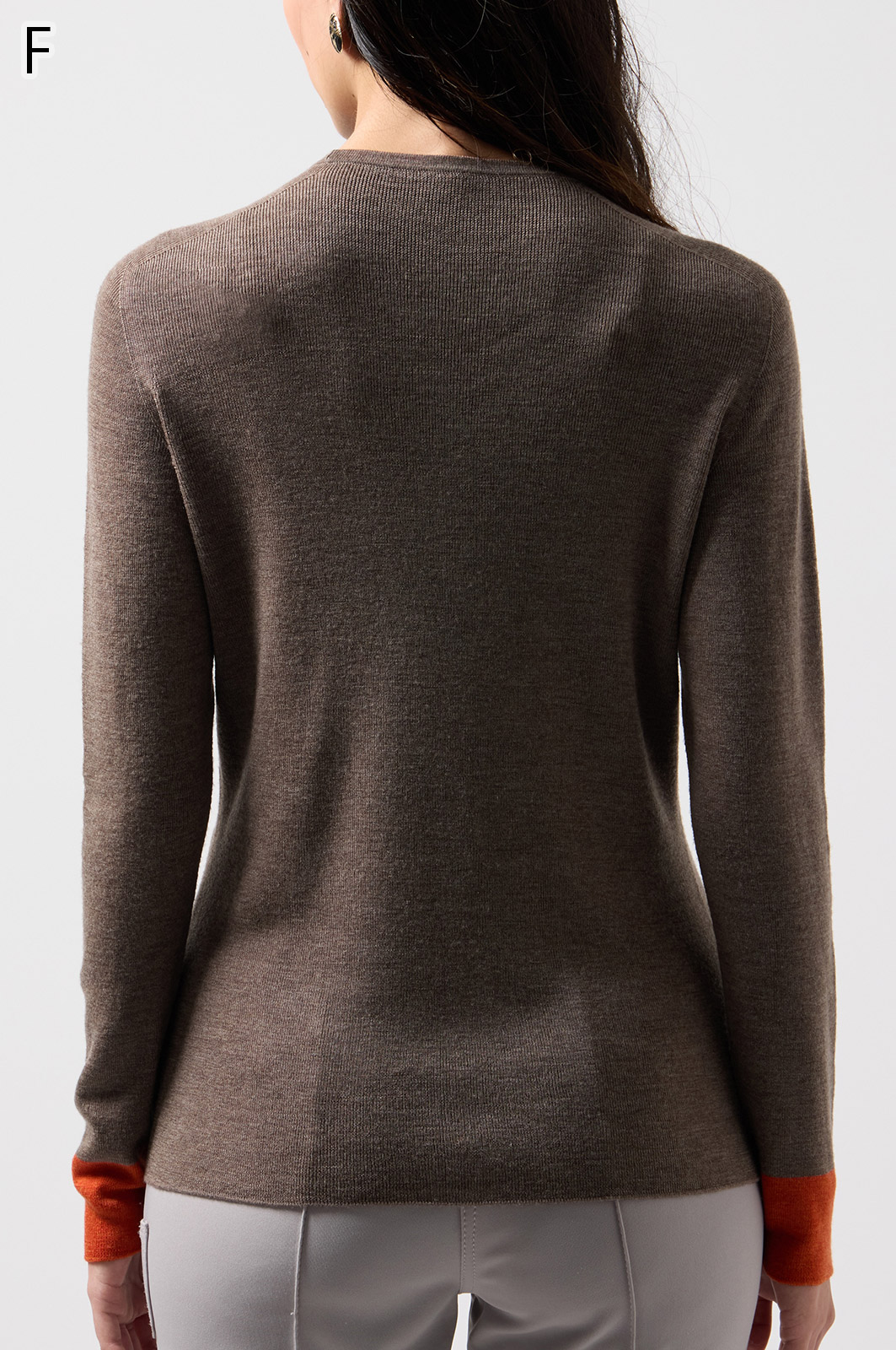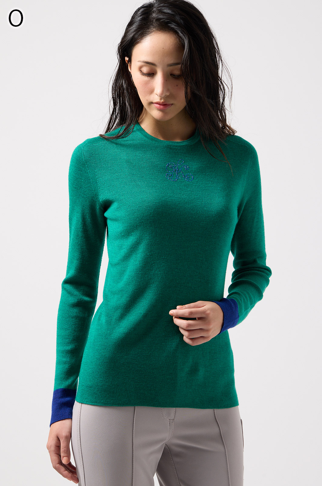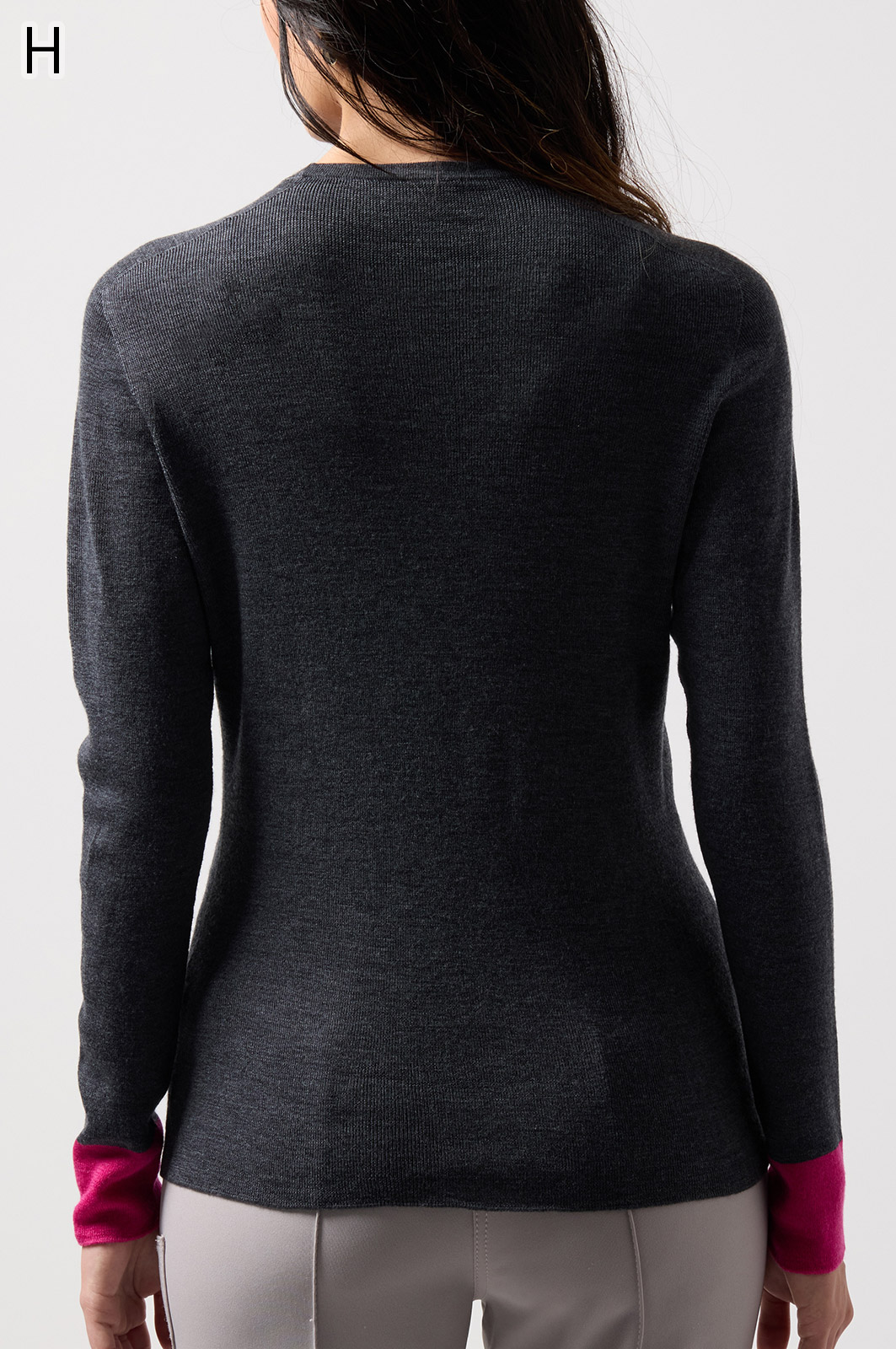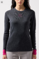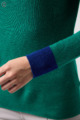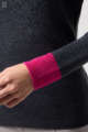 ウール100%のやわらかなニットで、縫い目のない仕立てが心地よく体になじむ一枚。衿裏と袖にあしらった2色使いが、さりげないおしゃれのポイントです。
