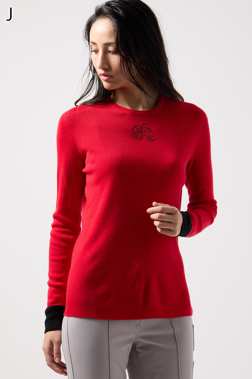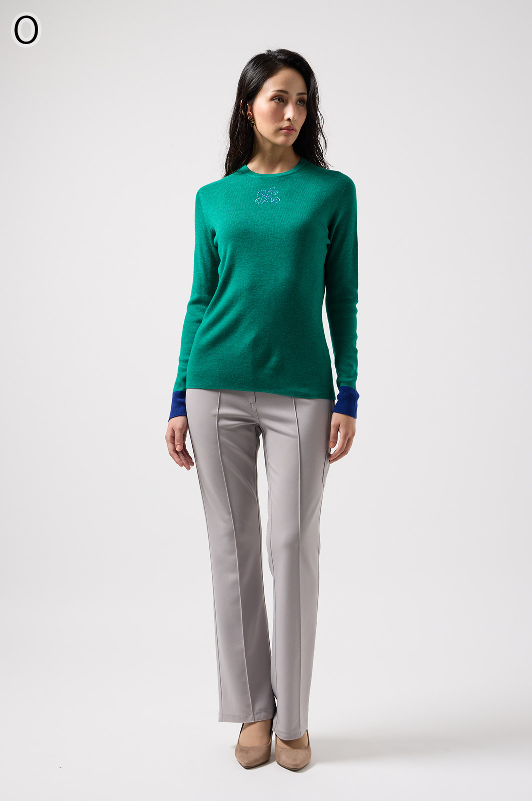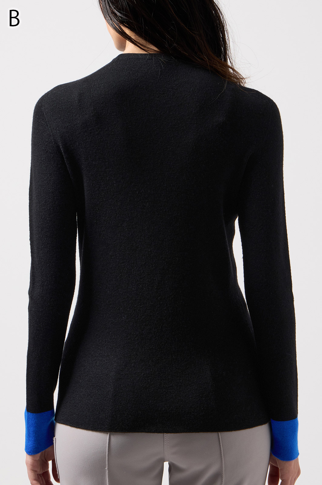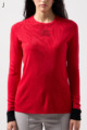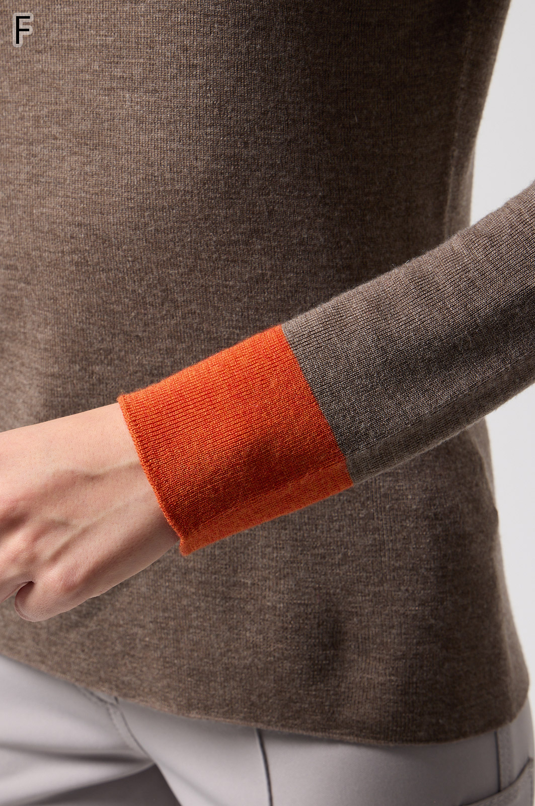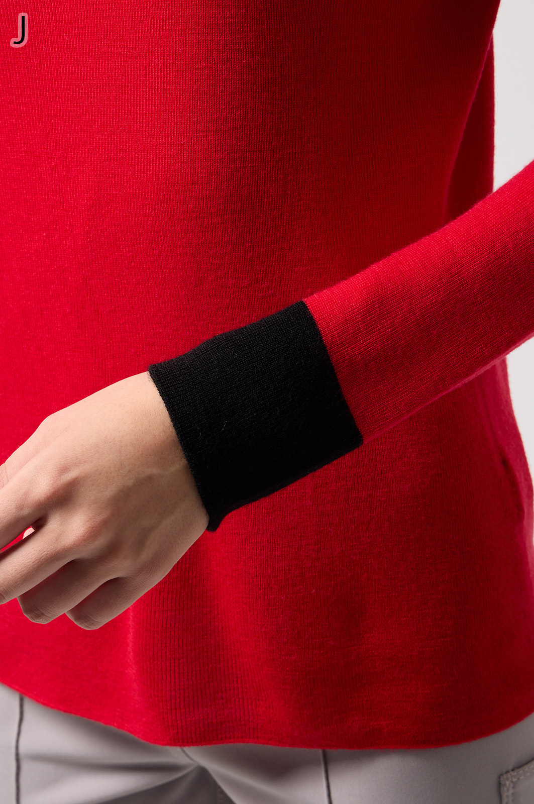 ウール100%のやわらかなニットで、縫い目のない仕立てが心地よく体になじむ一枚。衿裏と袖にあしらった2色使いが、さりげないおしゃれのポイントです。