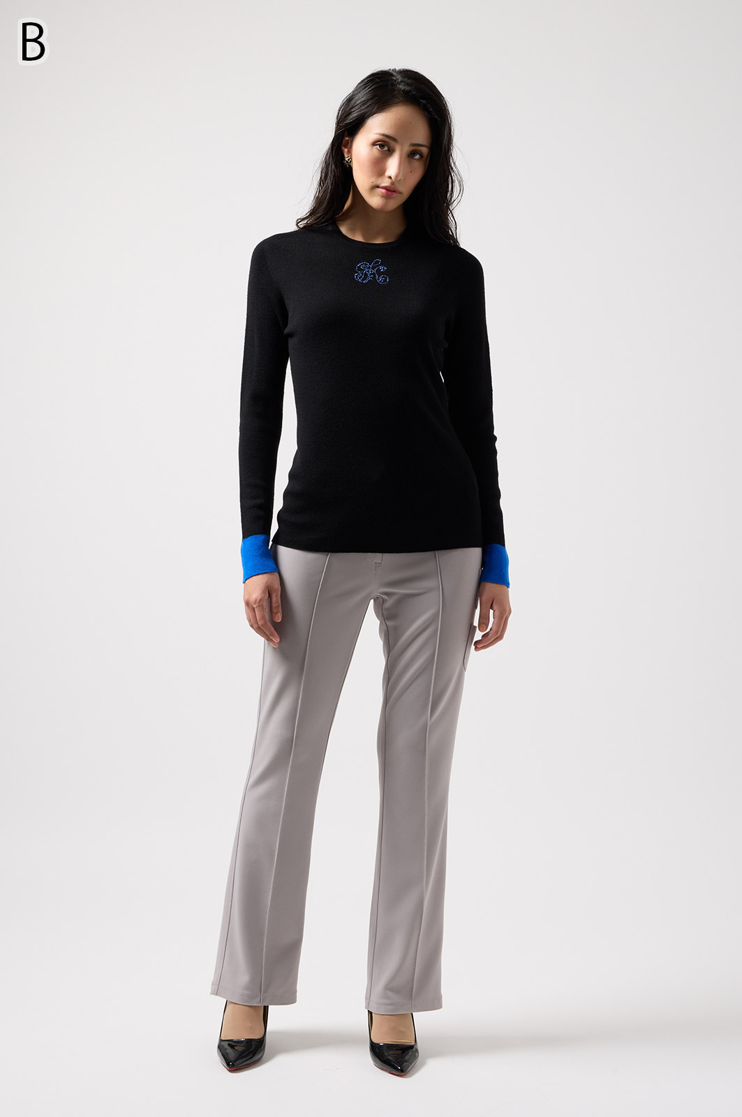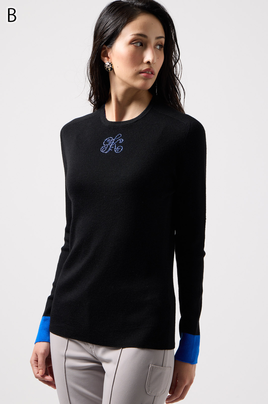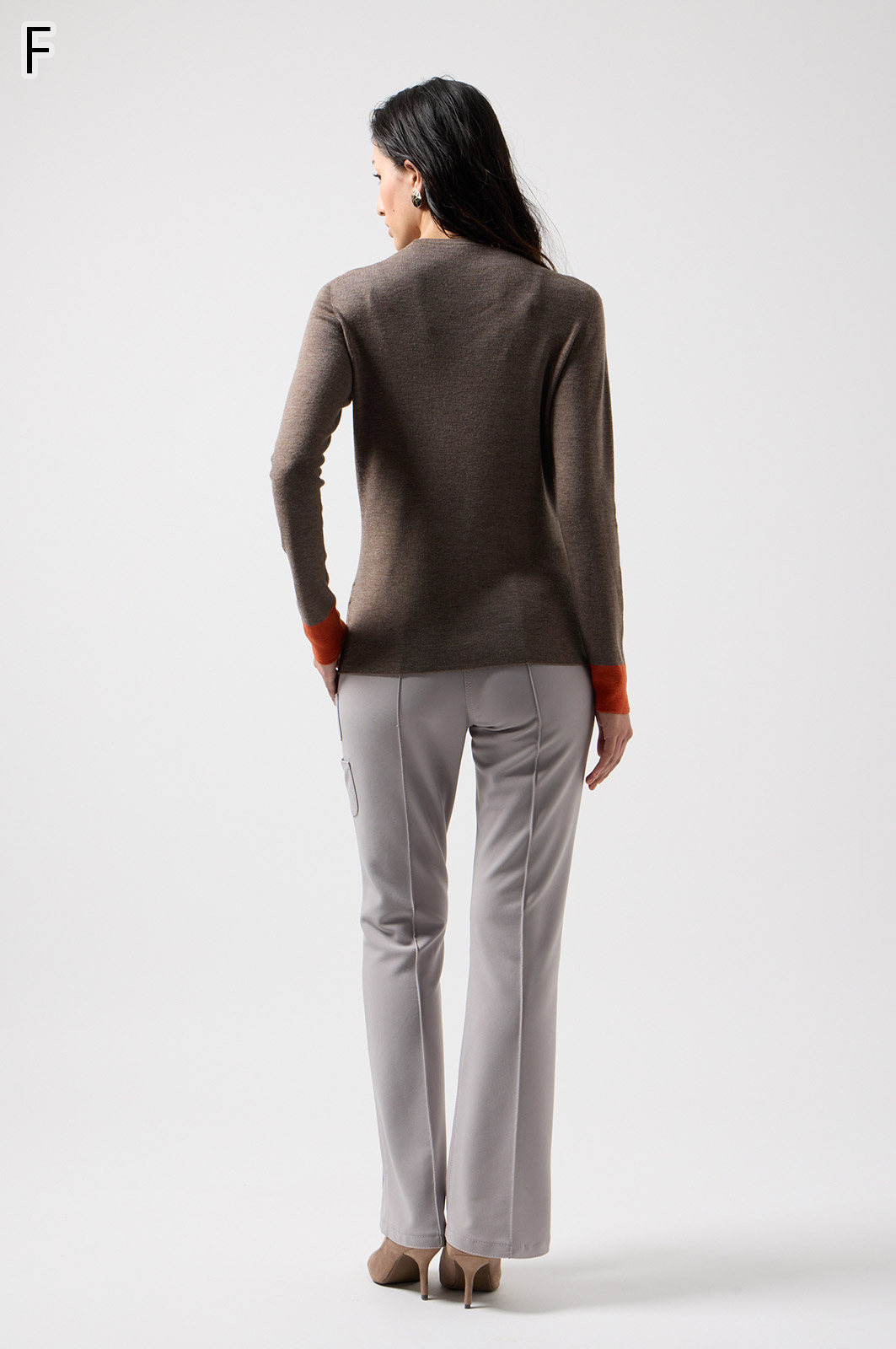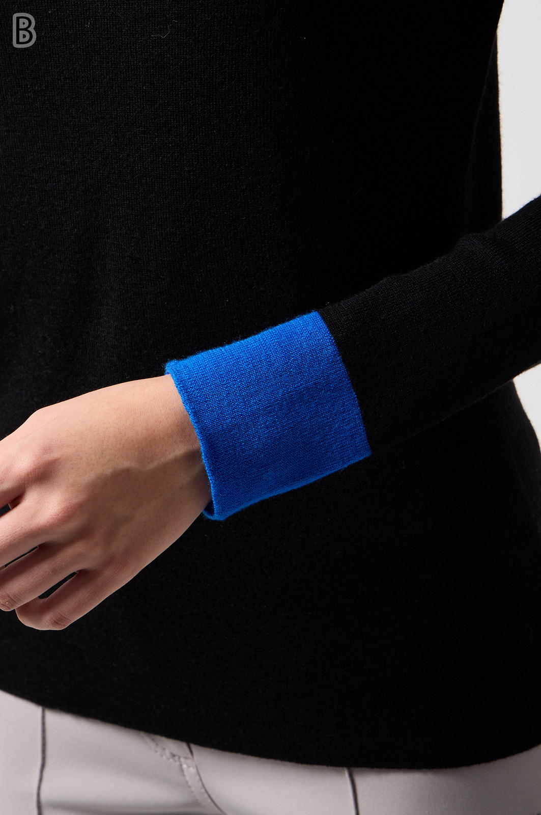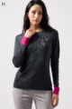 ウール100%のやわらかなニットで、縫い目のない仕立てが心地よく体になじむ一枚。衿裏と袖にあしらった2色使いが、さりげないおしゃれのポイントです。